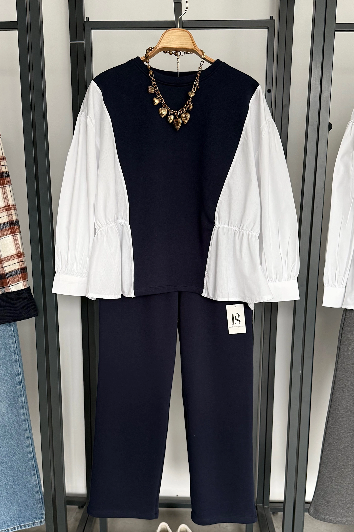 Navy Sweatshirt-Detail Shirt Set