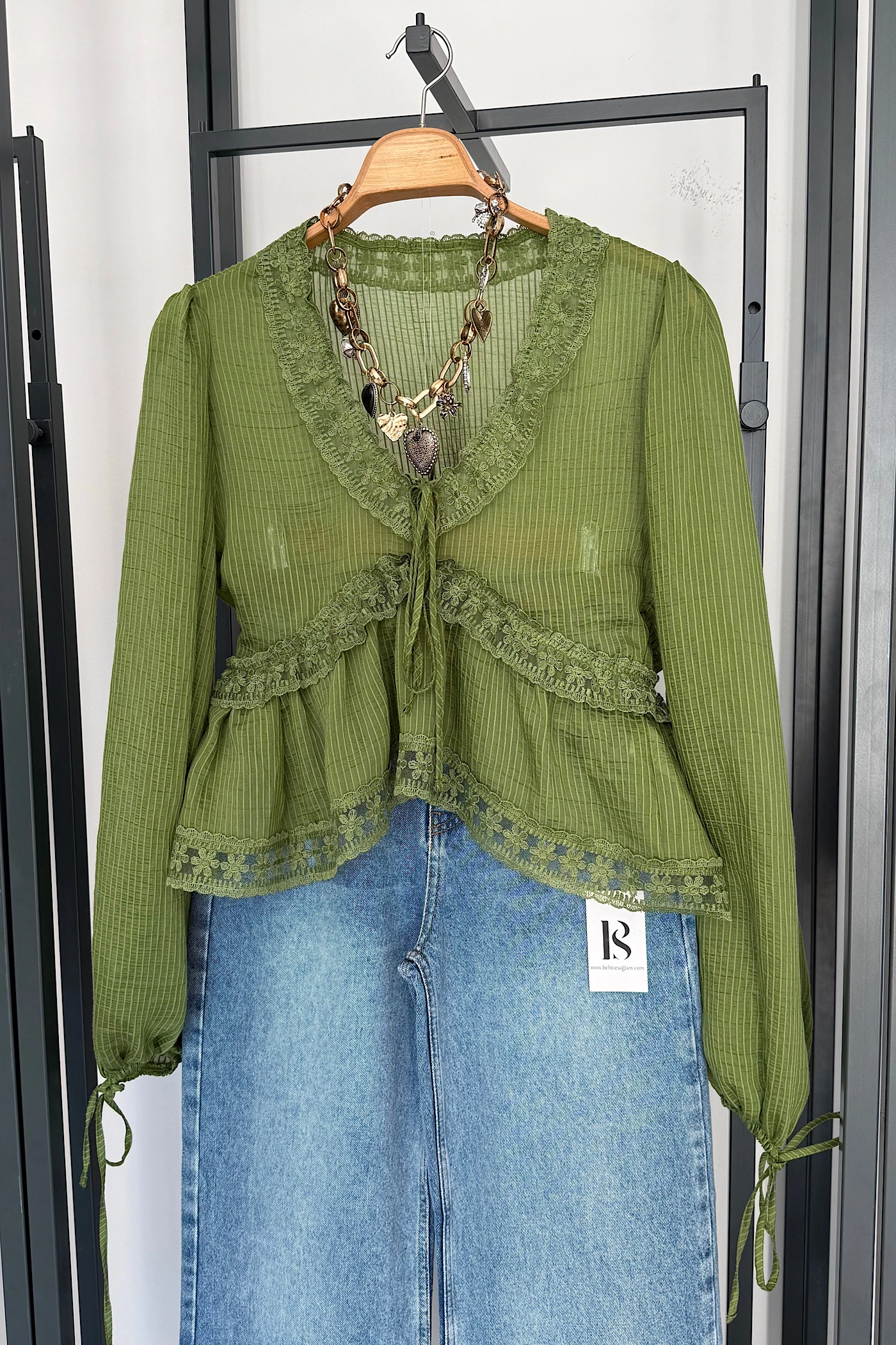 Velvet-Trim Quilted Jacket – Green !