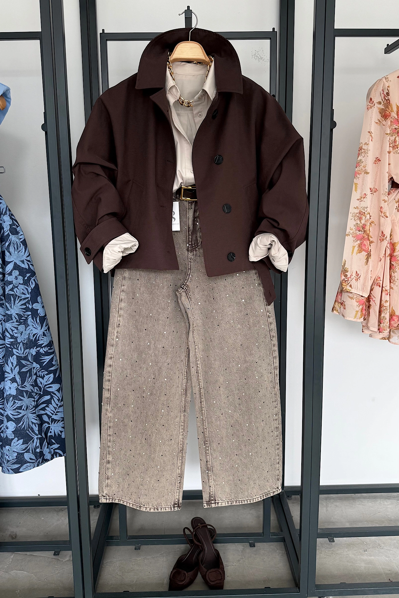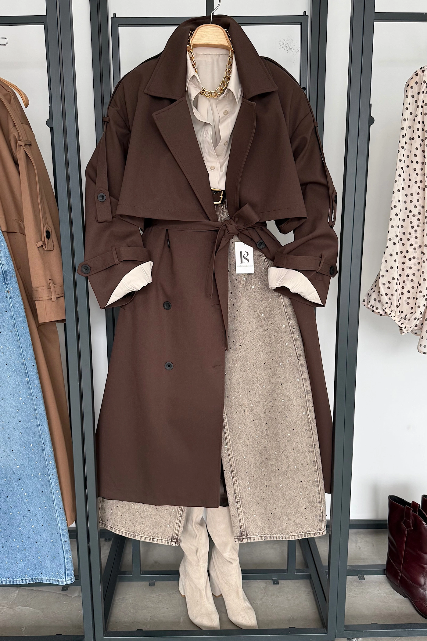 Scarf-Detail Knit Cardigan – Anthracite & Red !