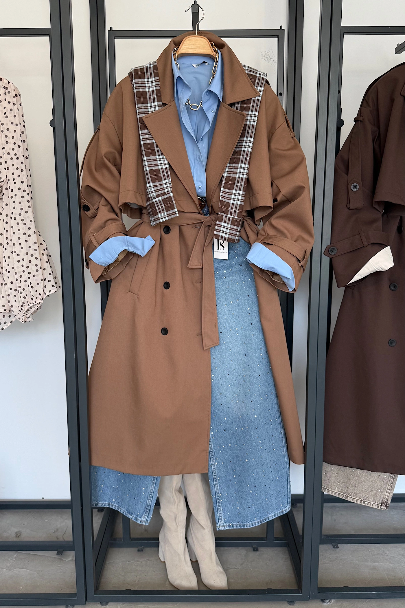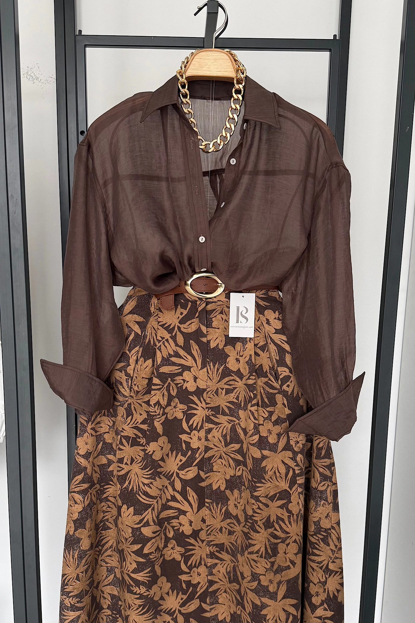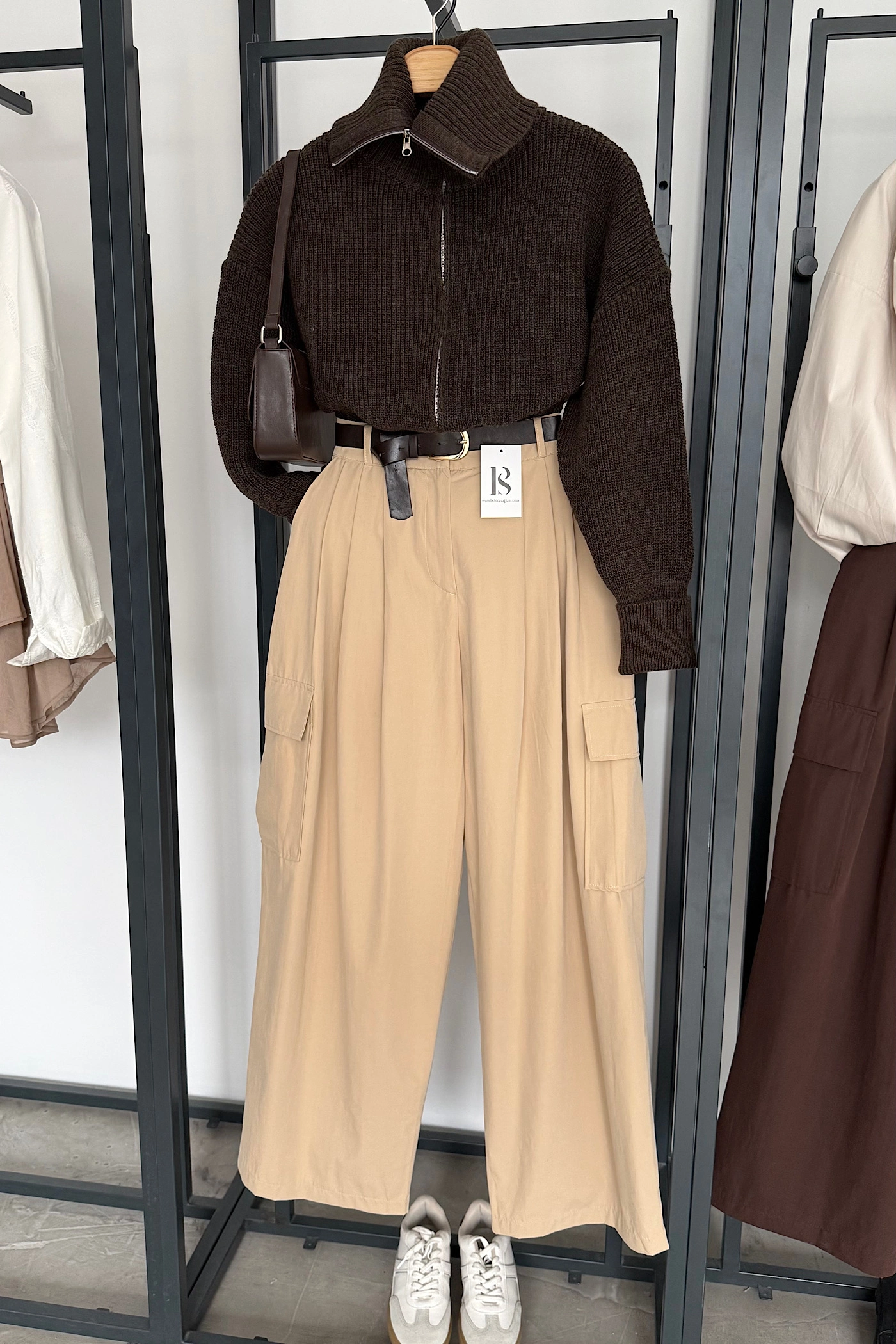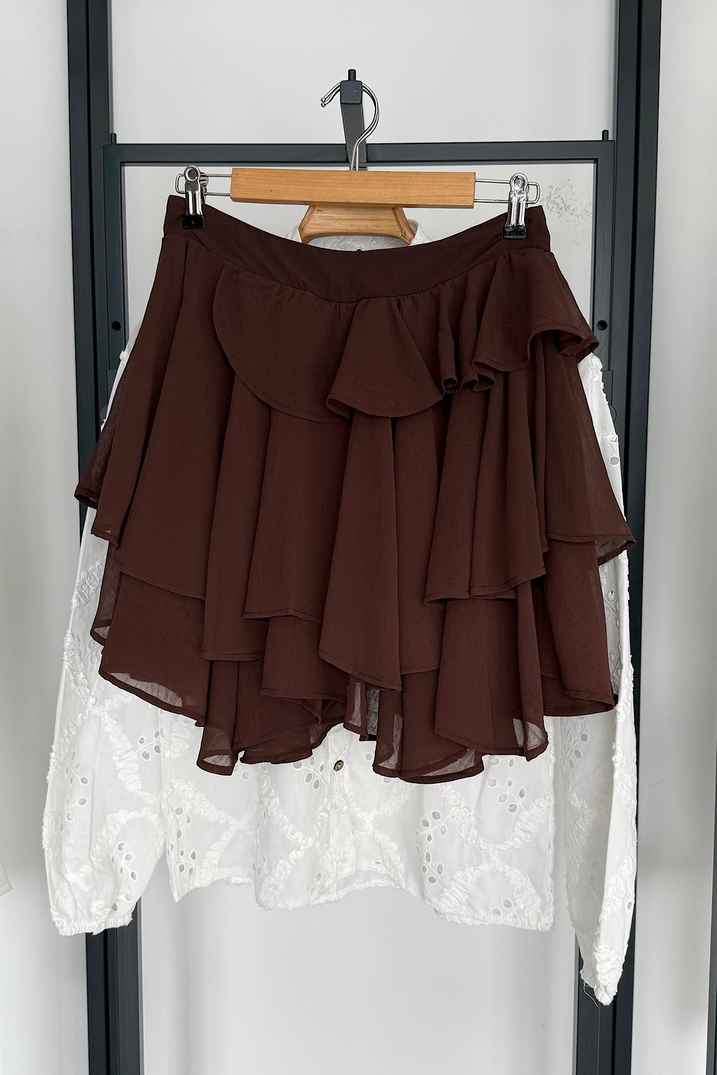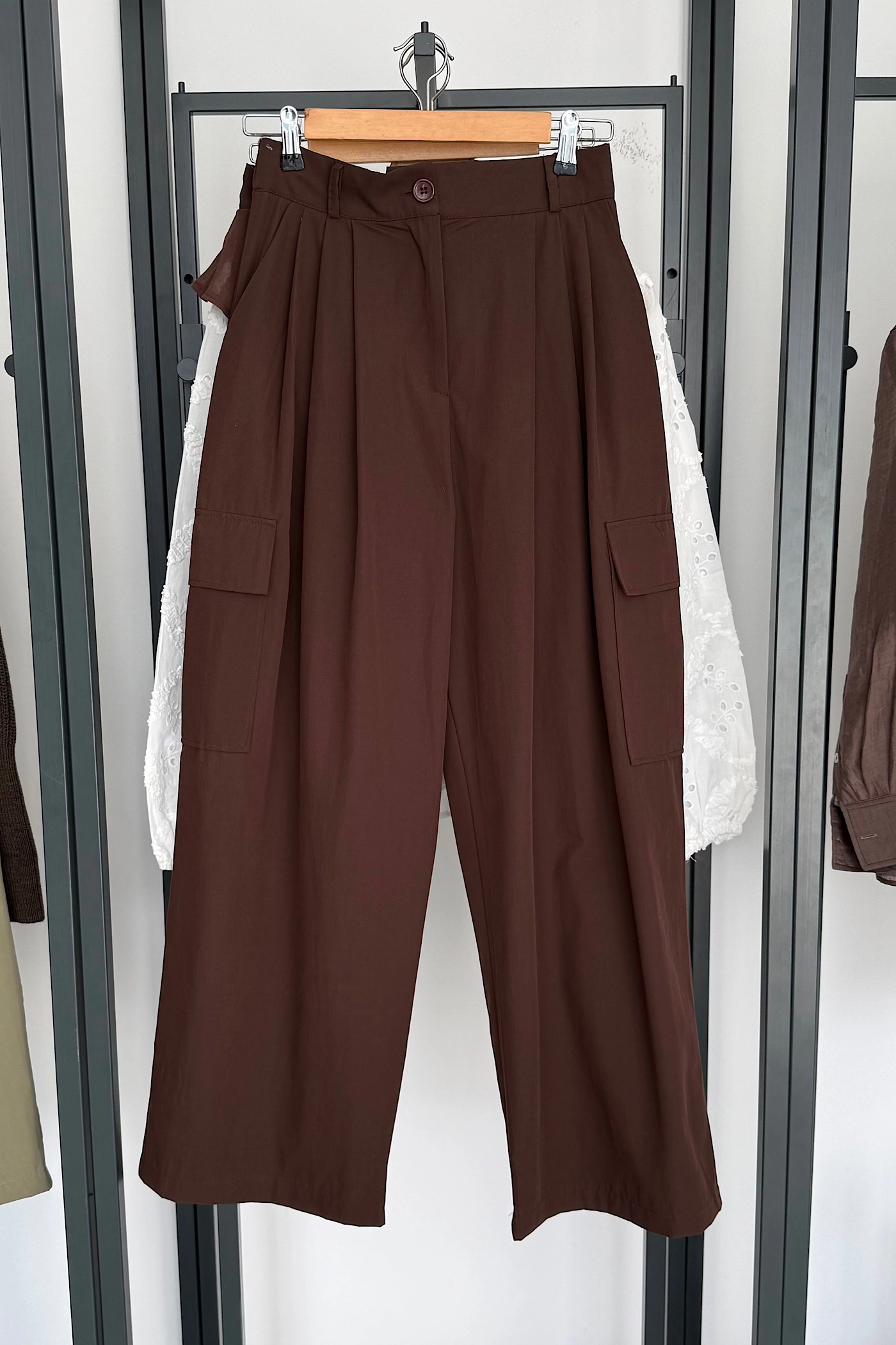 Bs Pocket Detail Gabardine Flared Skirt – Brown