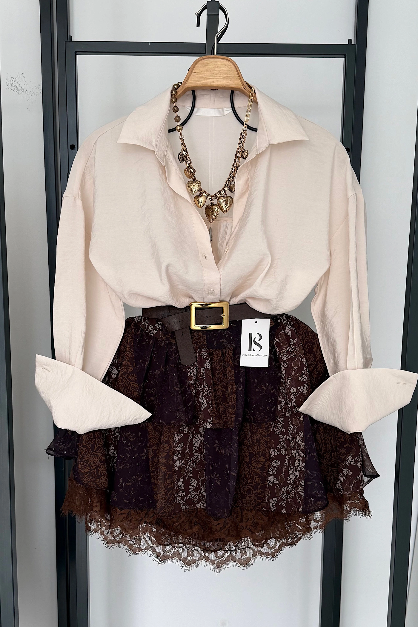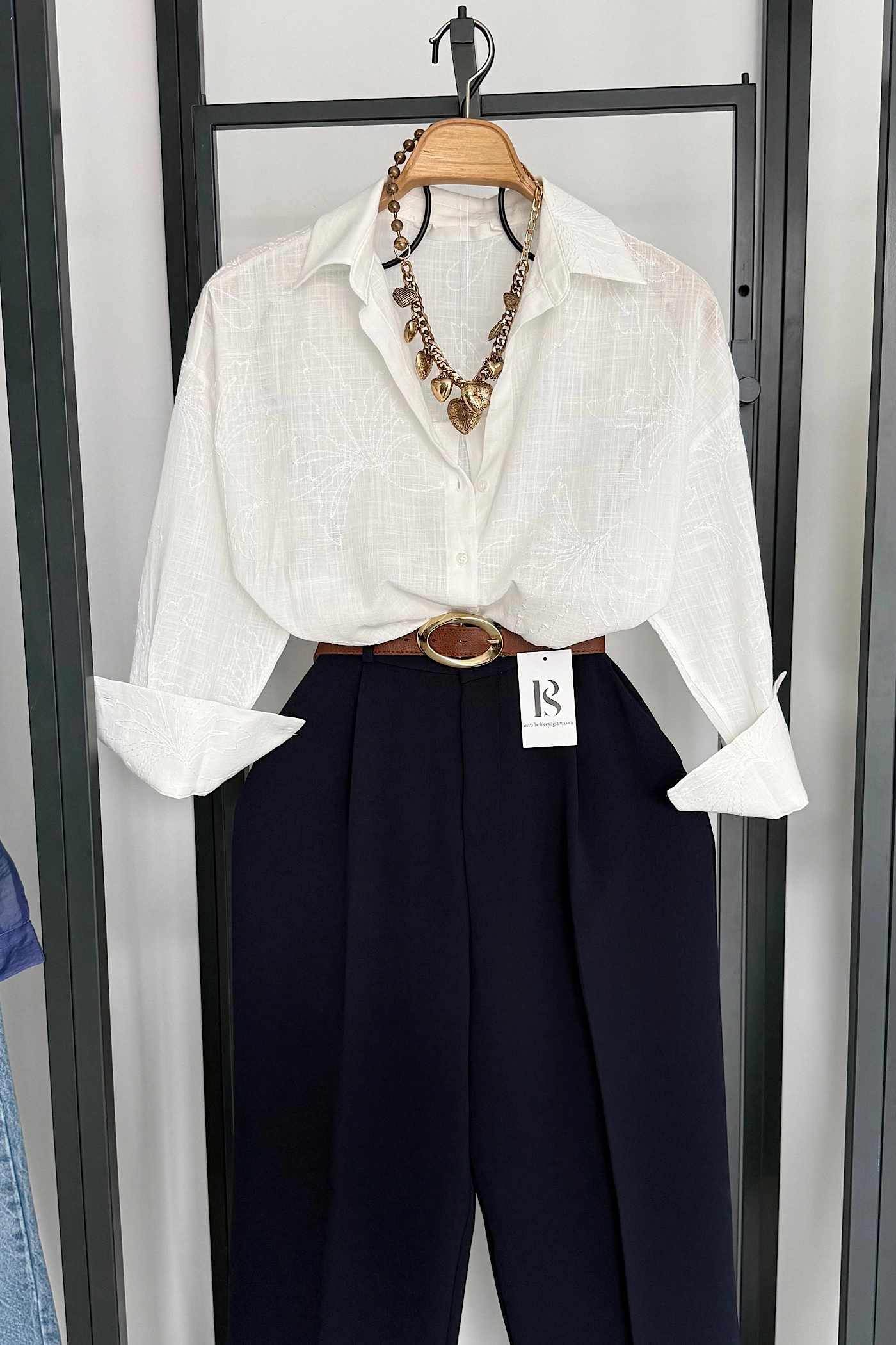 Bs Embroidered Tie-Detail Shirt – White