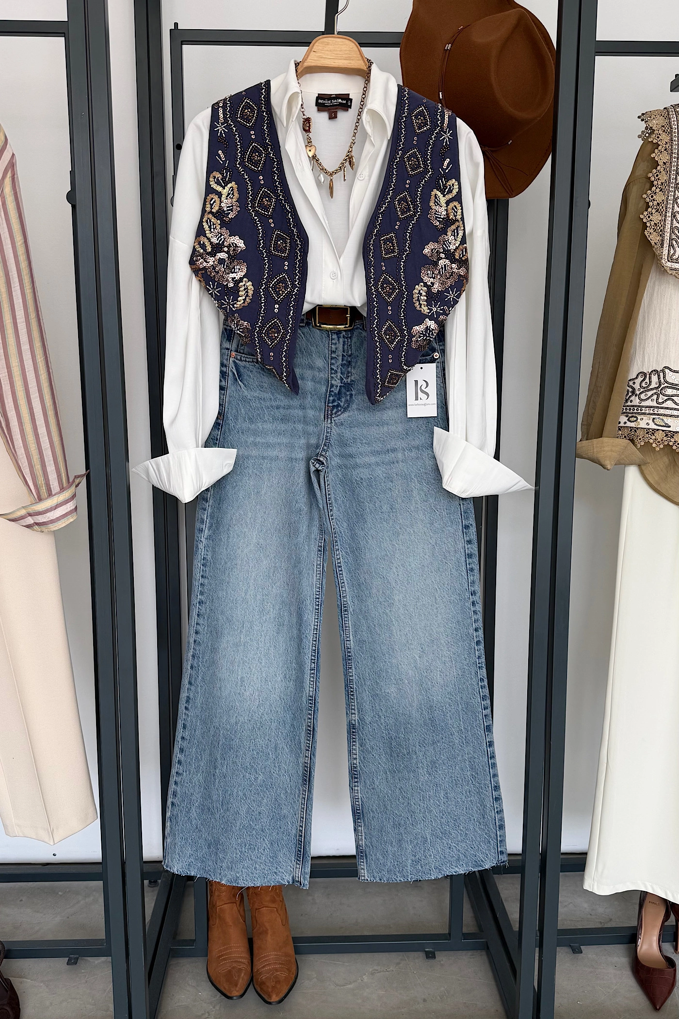 Sequin Design Vest – Indigo