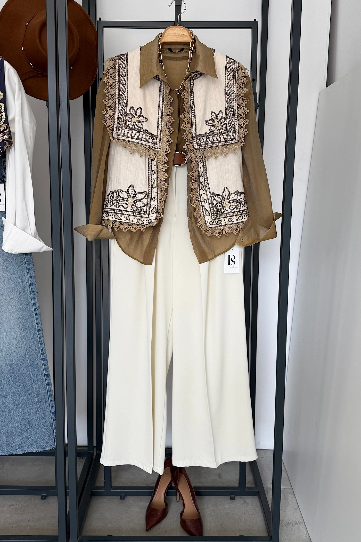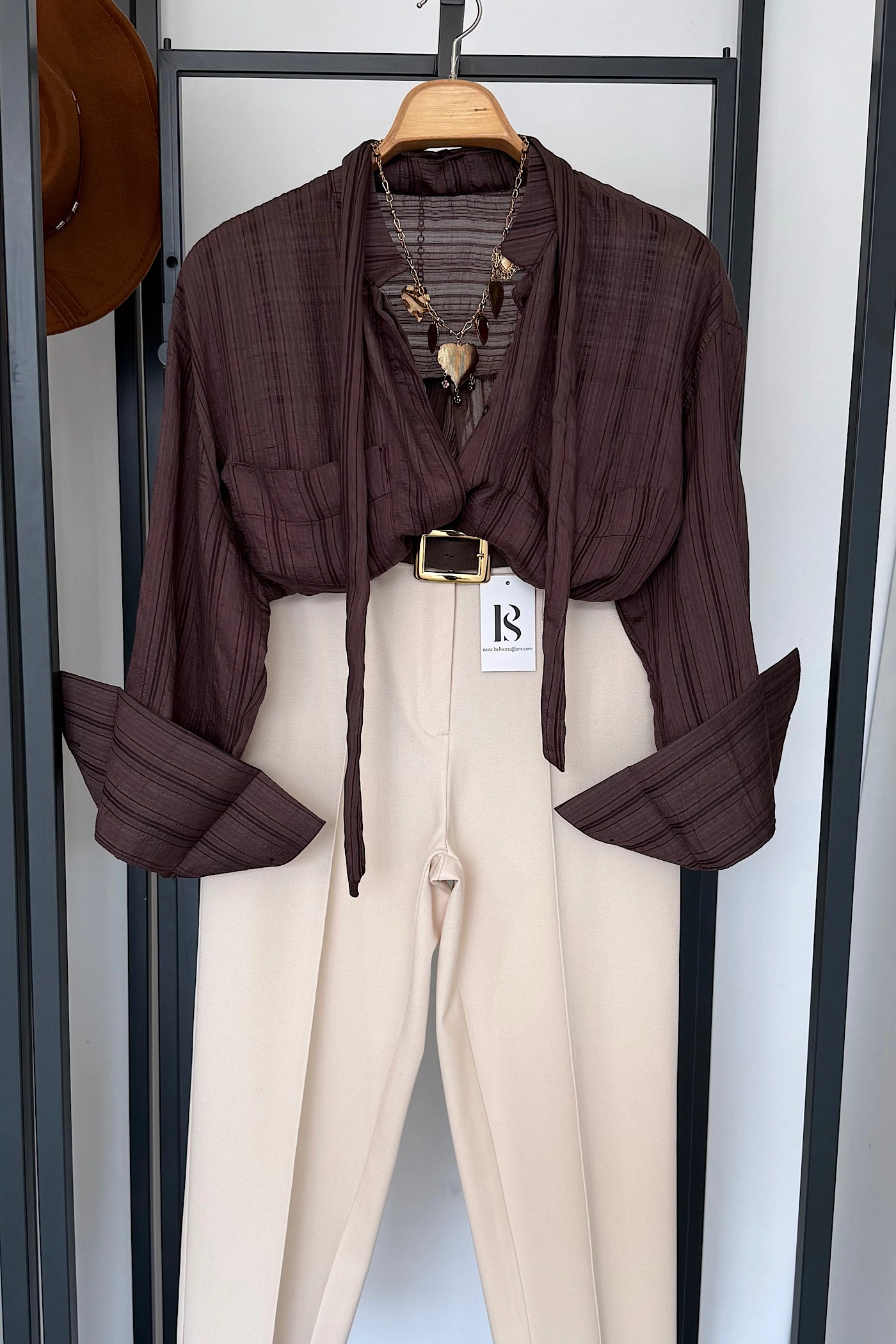 Tie-Neck Modal Shirt – Khaki