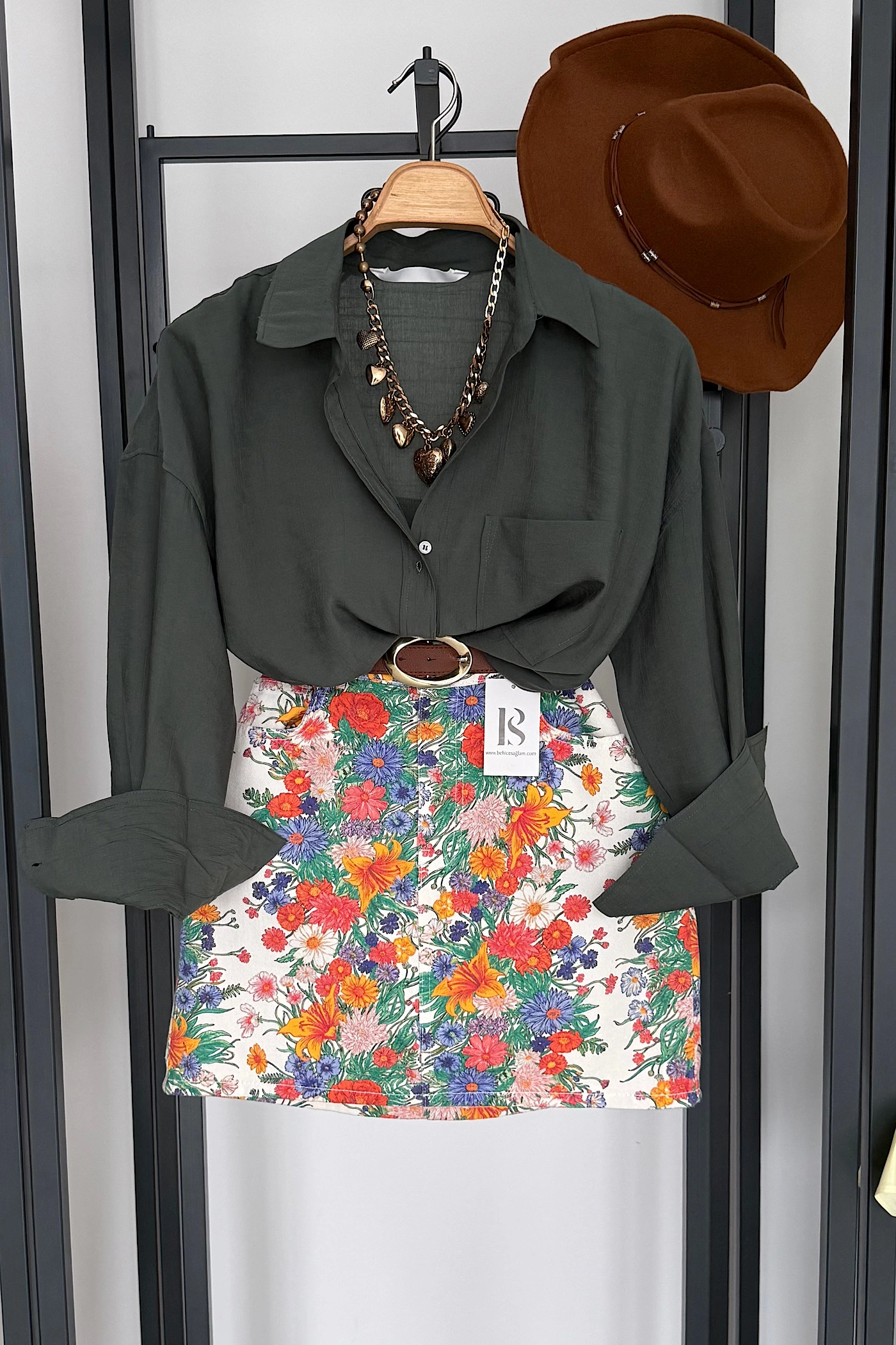 Silky Oversized Shirt – Oil Green