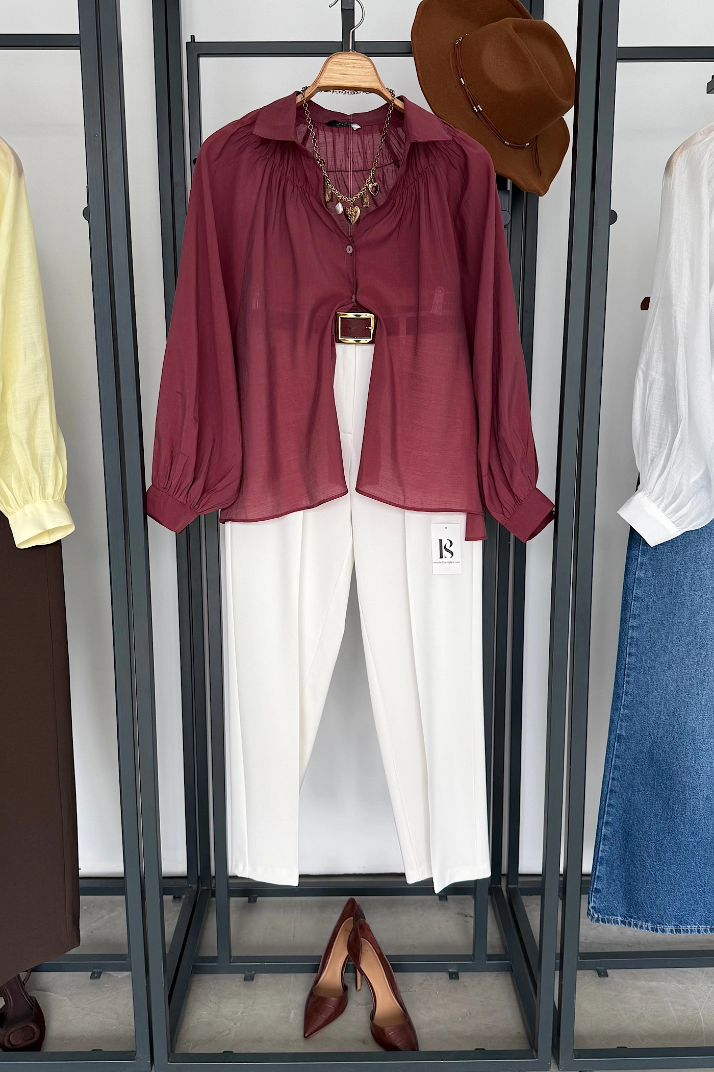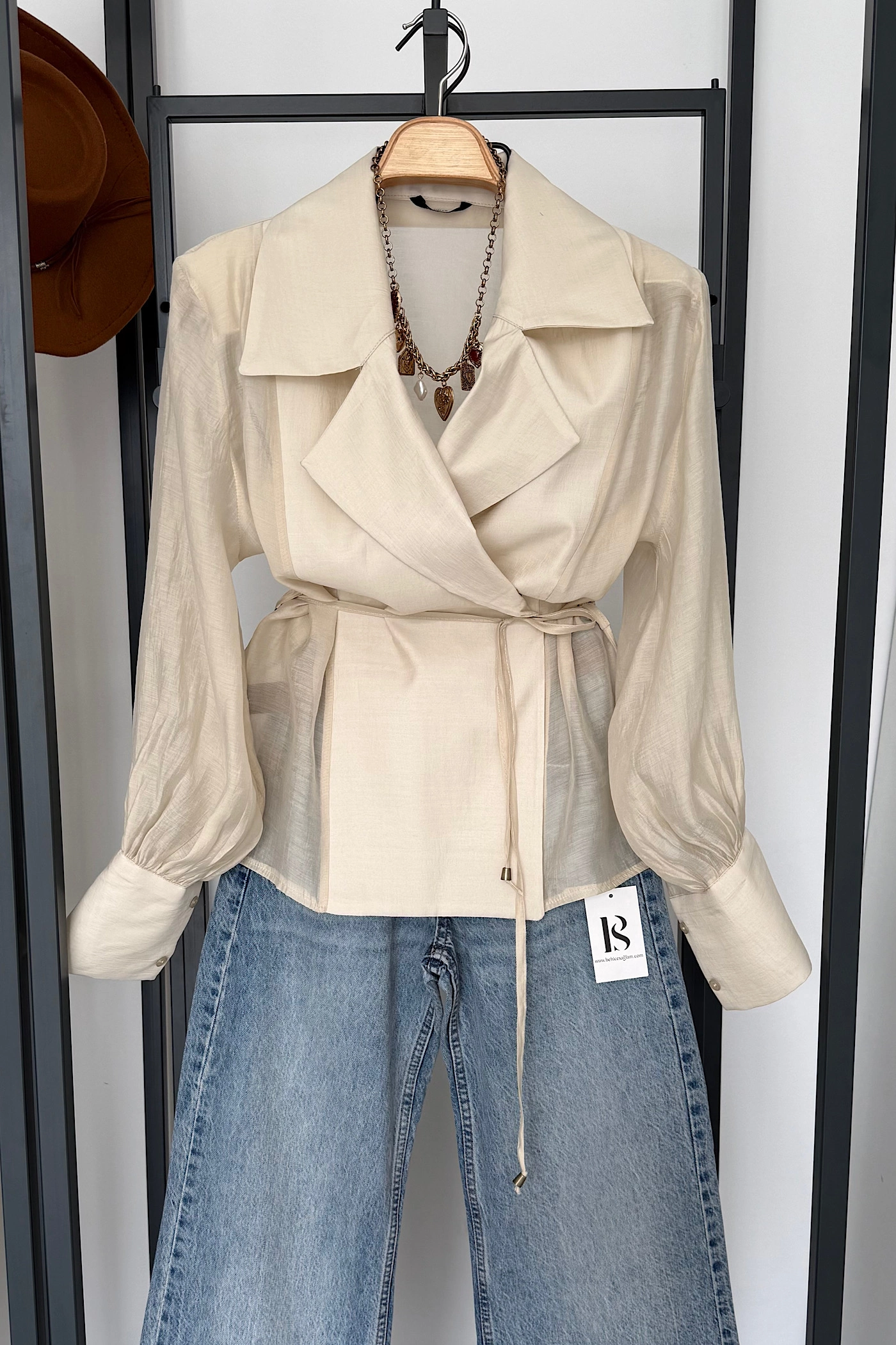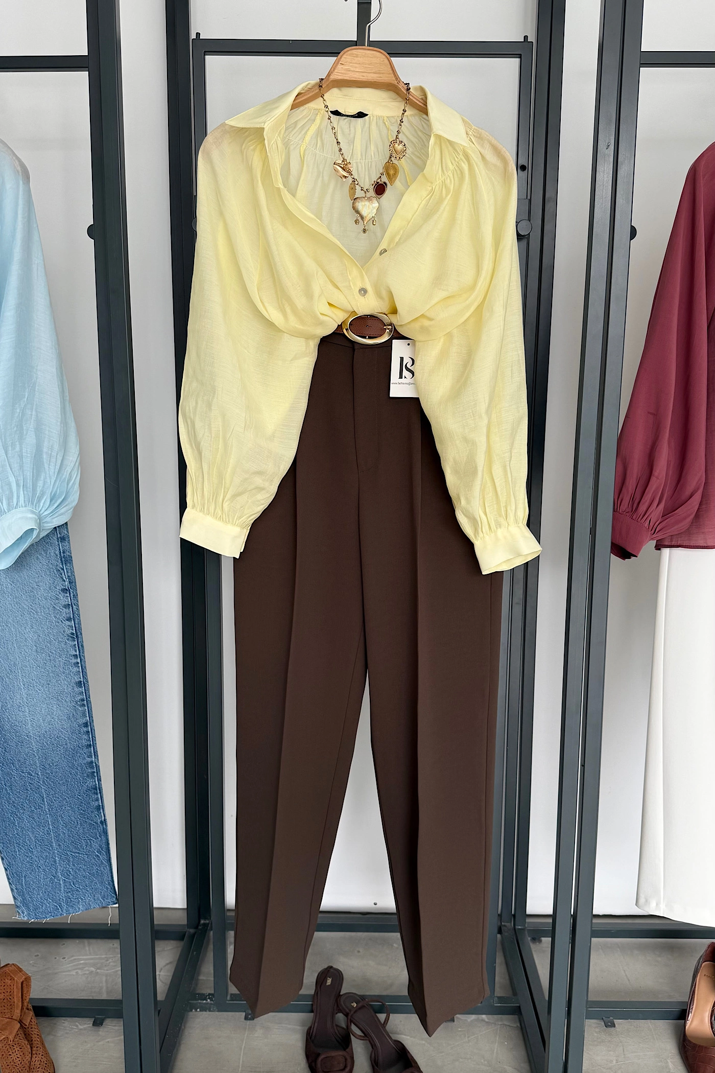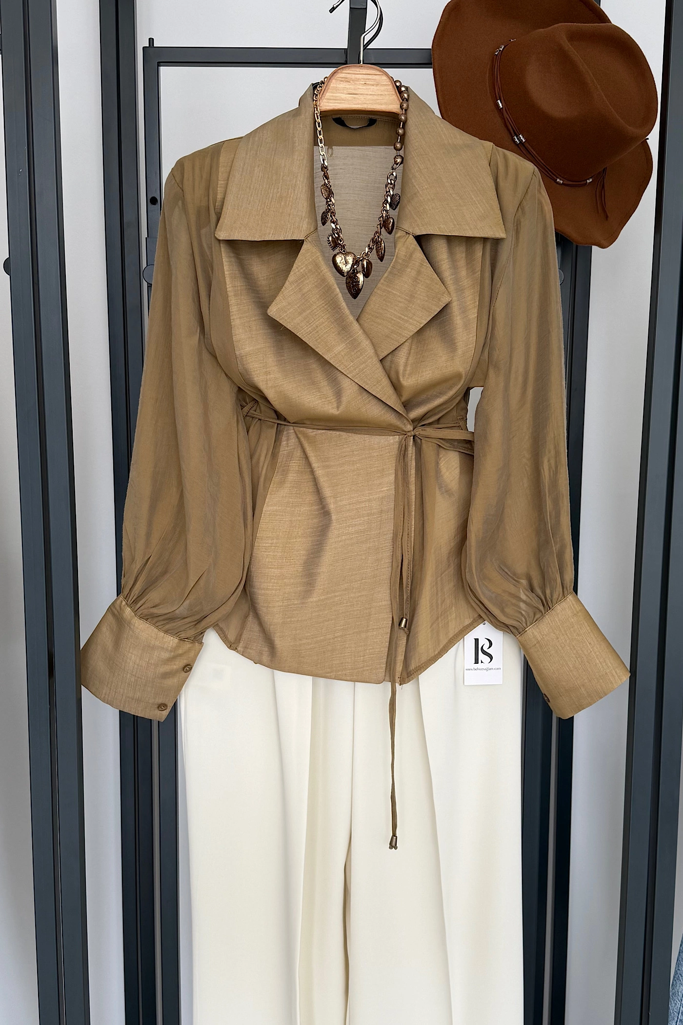 Self-Belted Polka Dot Chiffon Skirt – Brown