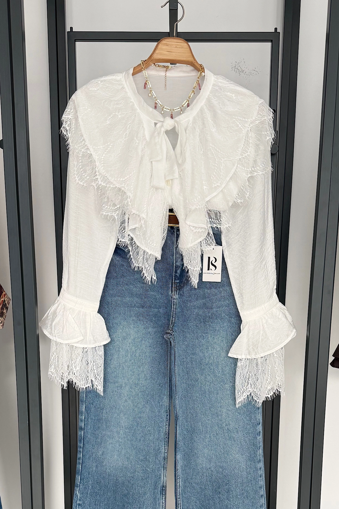 Designer Ruffled Tie-Detail Shirt – White