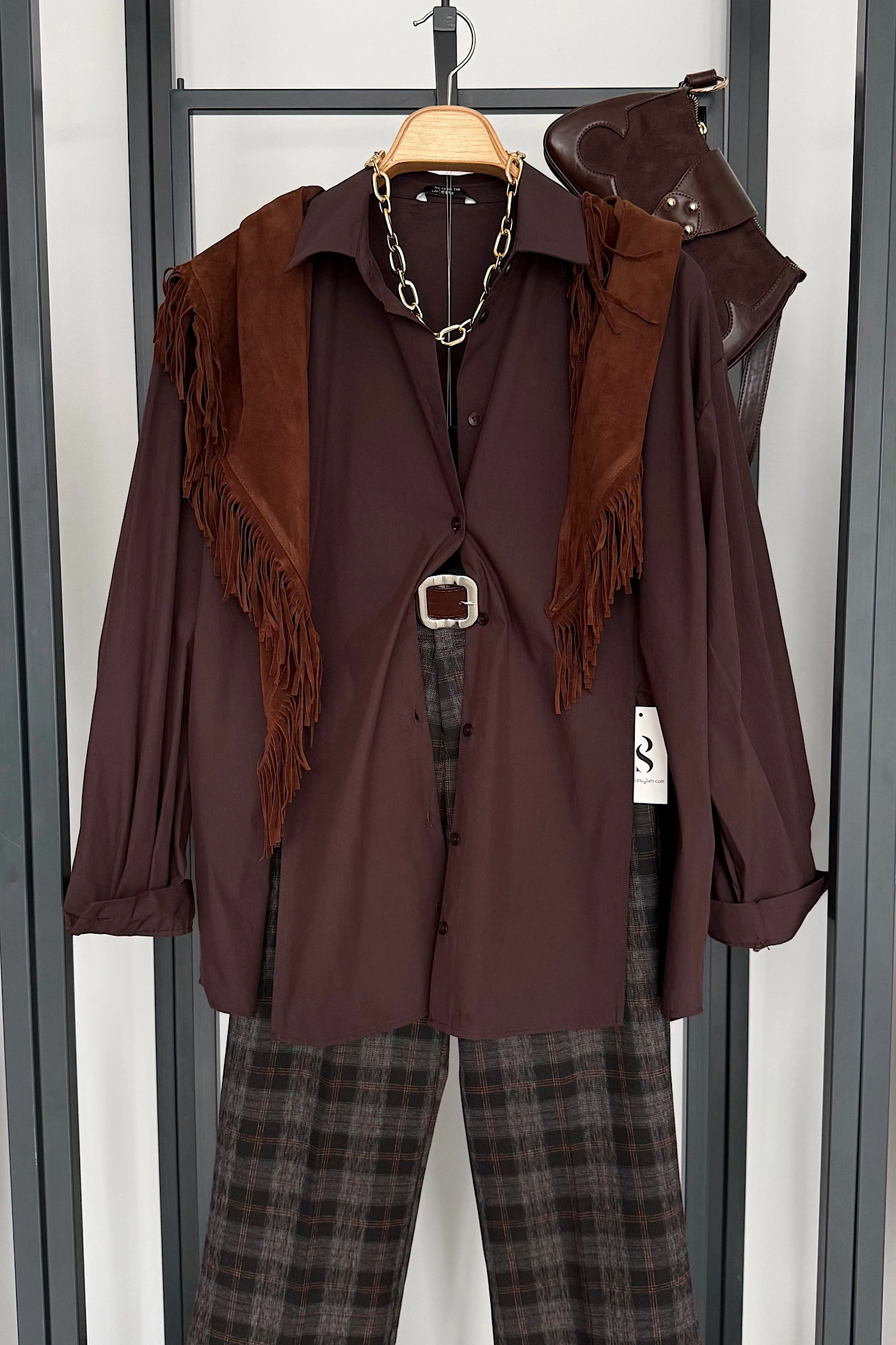 Oversized Plaid Shirt – Dark Cinnamon