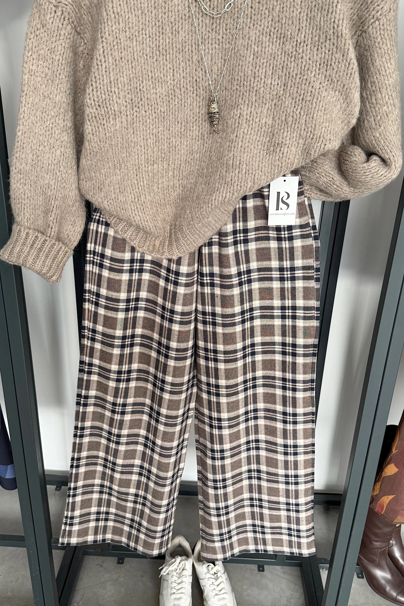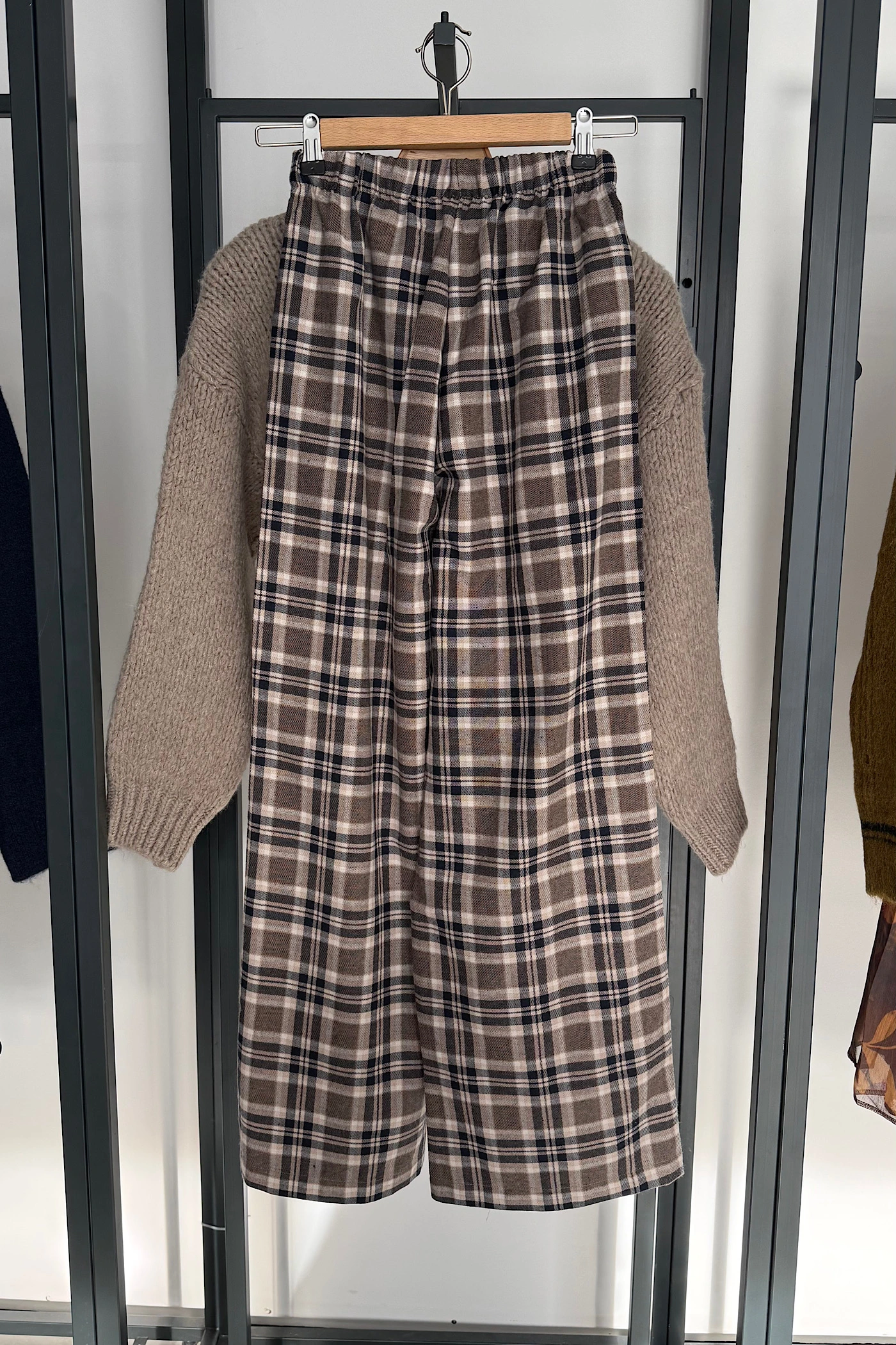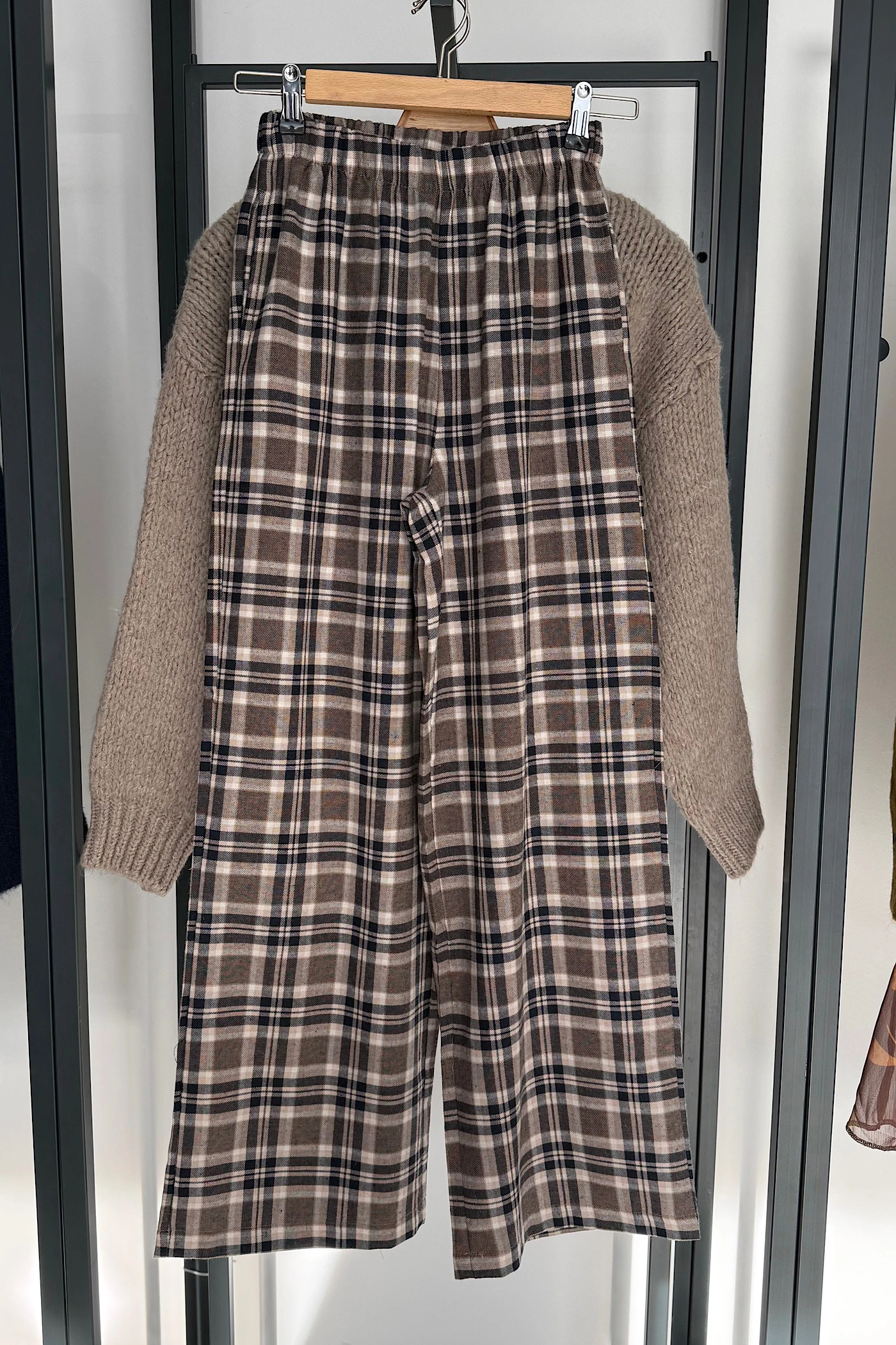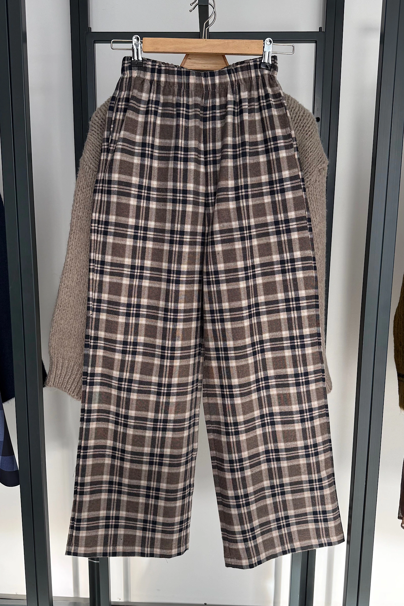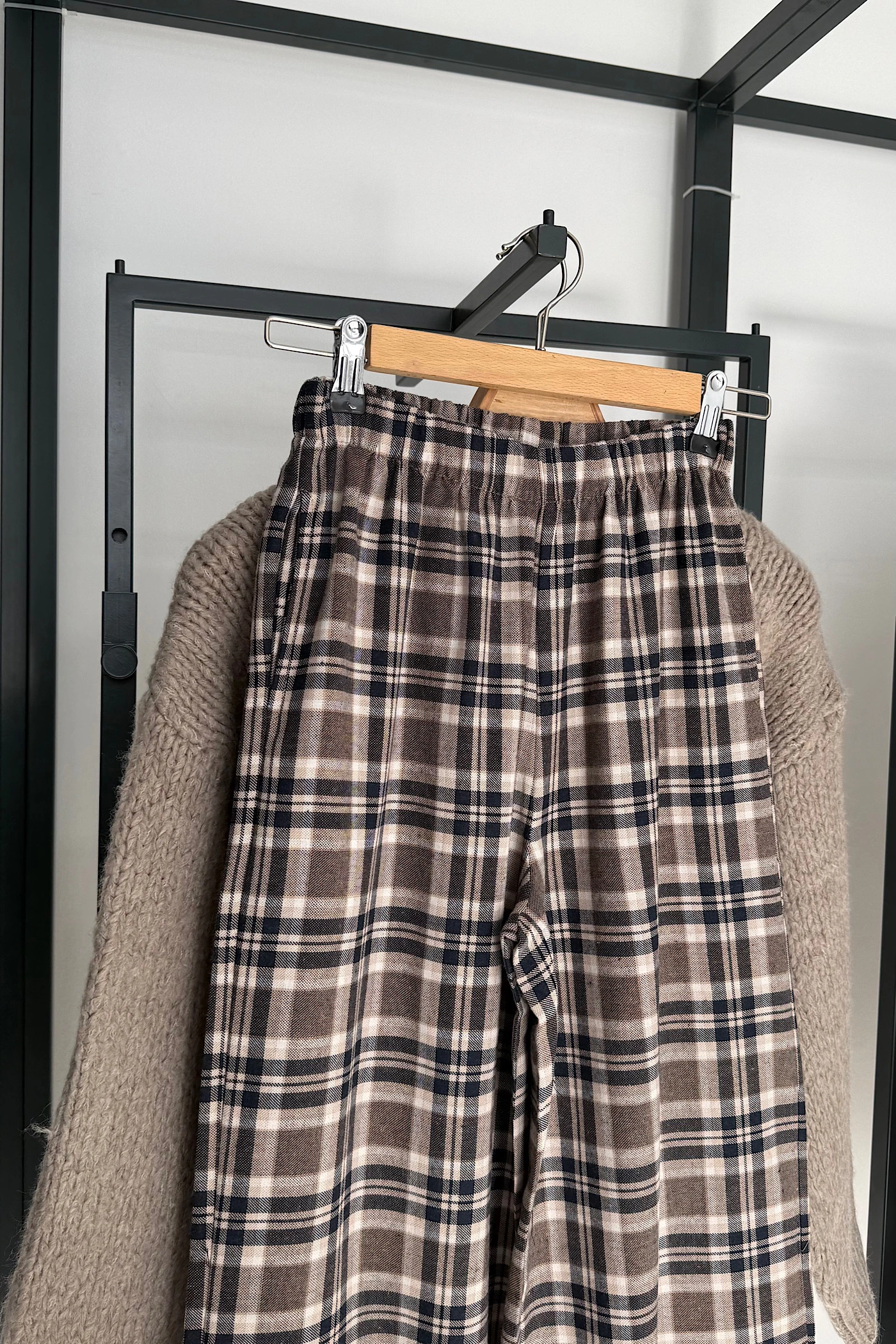 Beige-Navy Plaid Pants