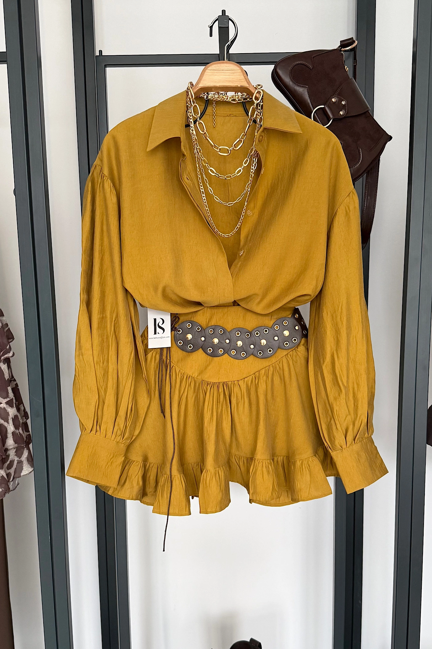 Mustard Corset-Waist Skirt Set