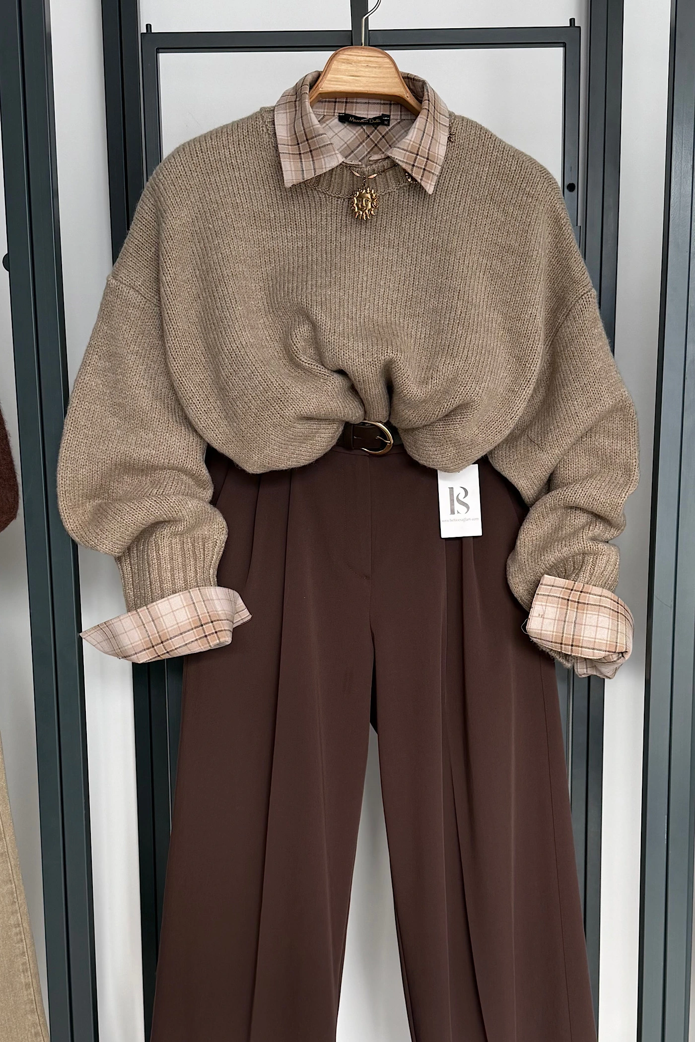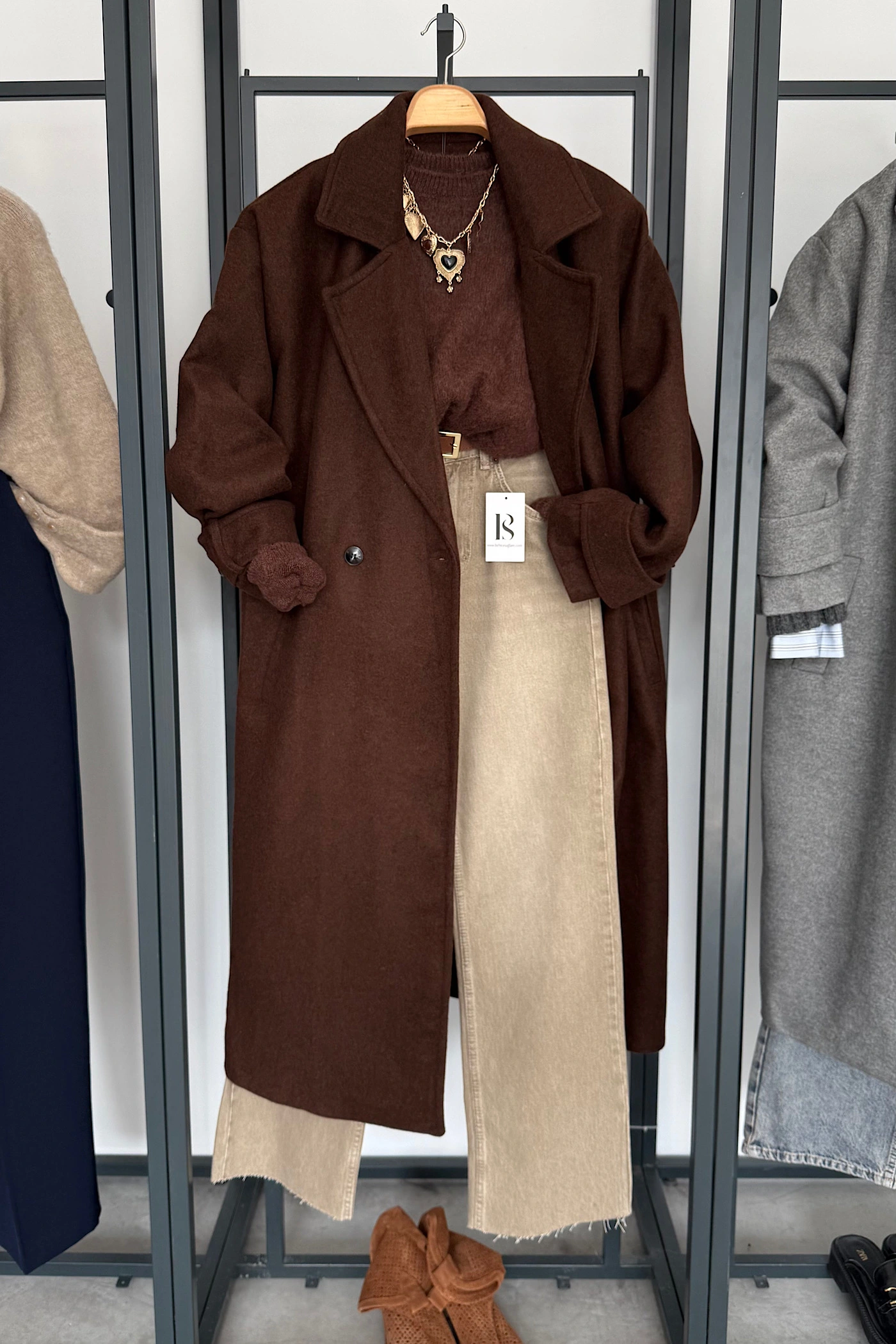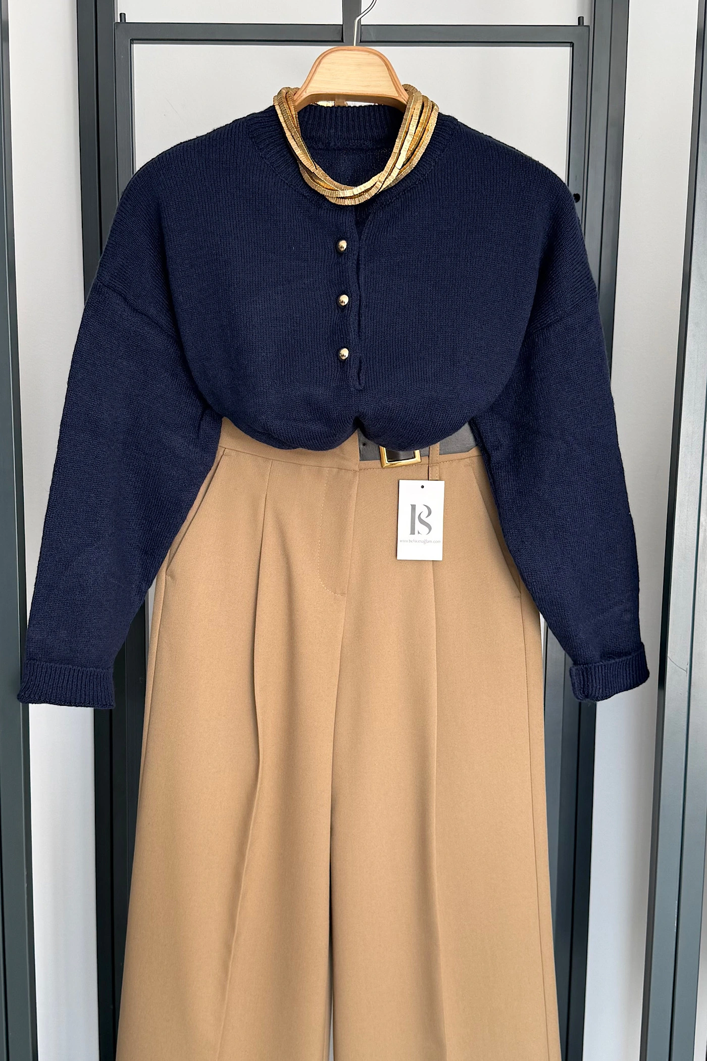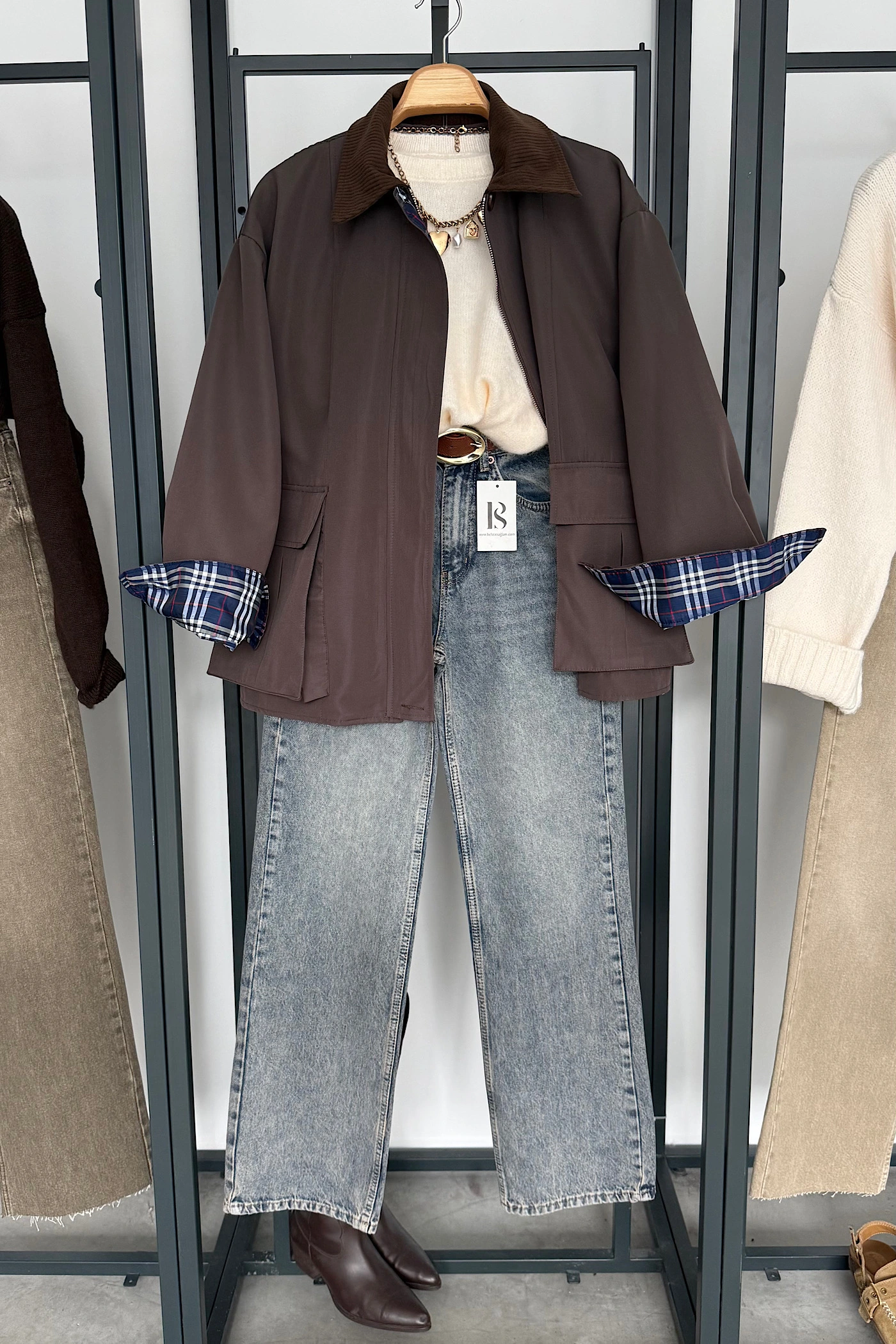 Patterned Brushed Buttoned Knit Cardigan Brown