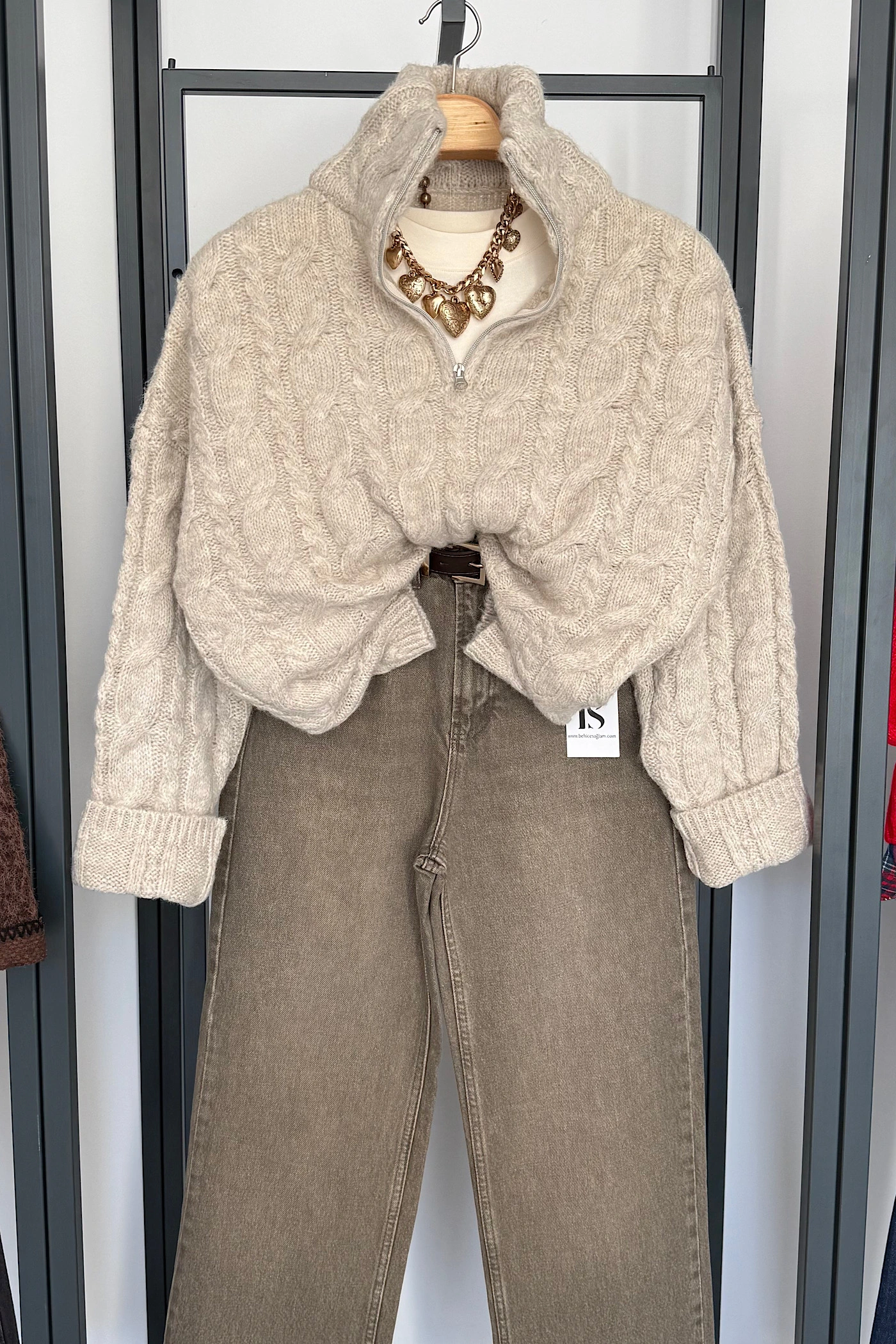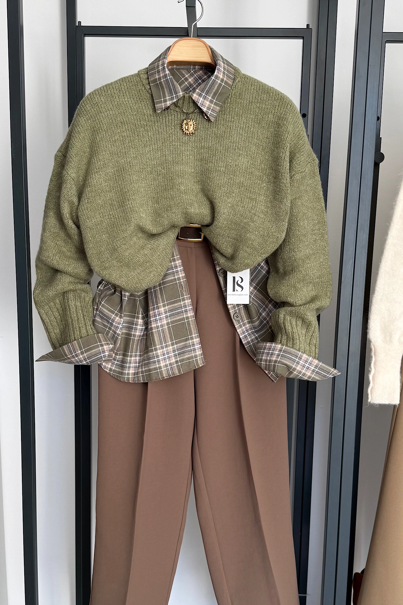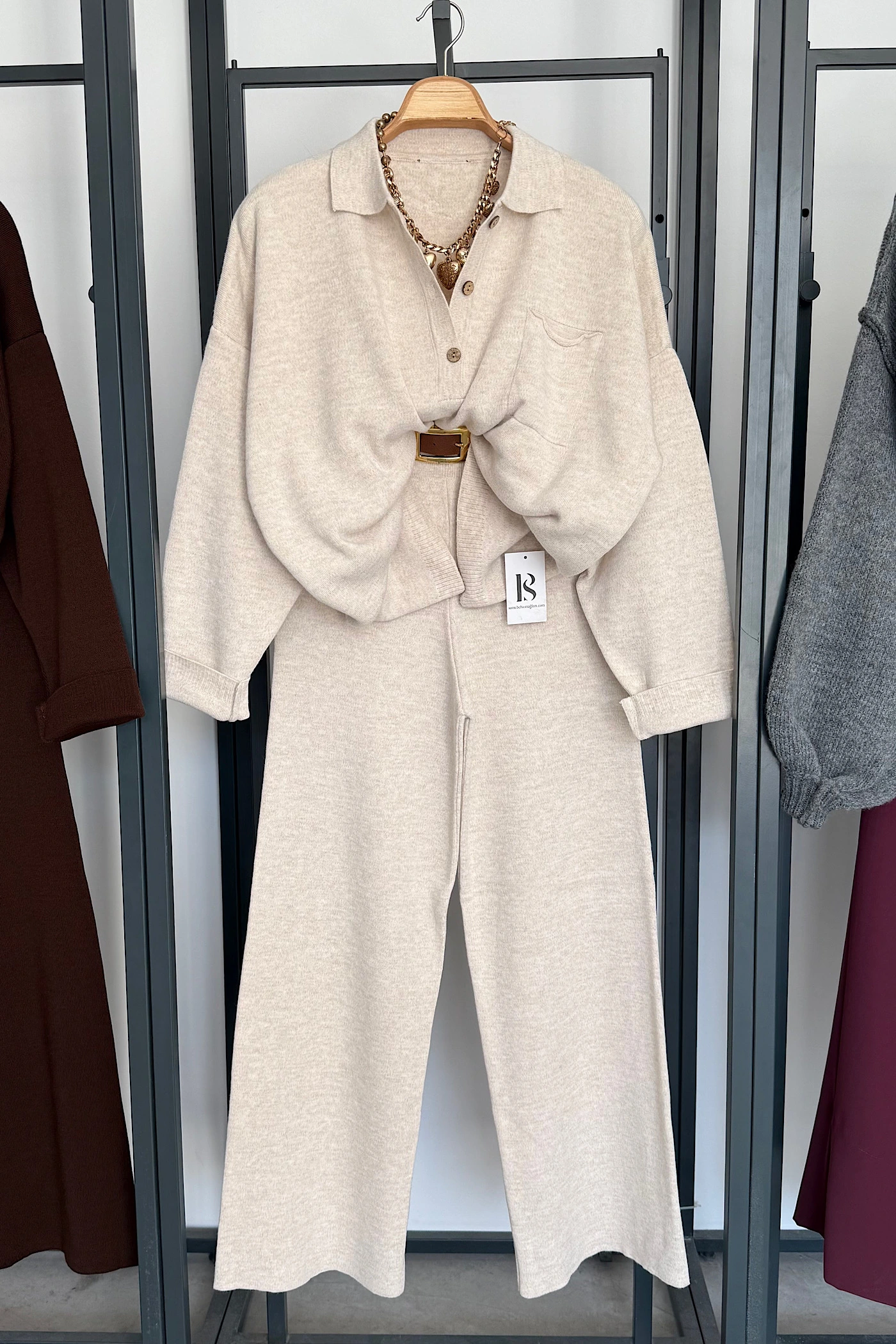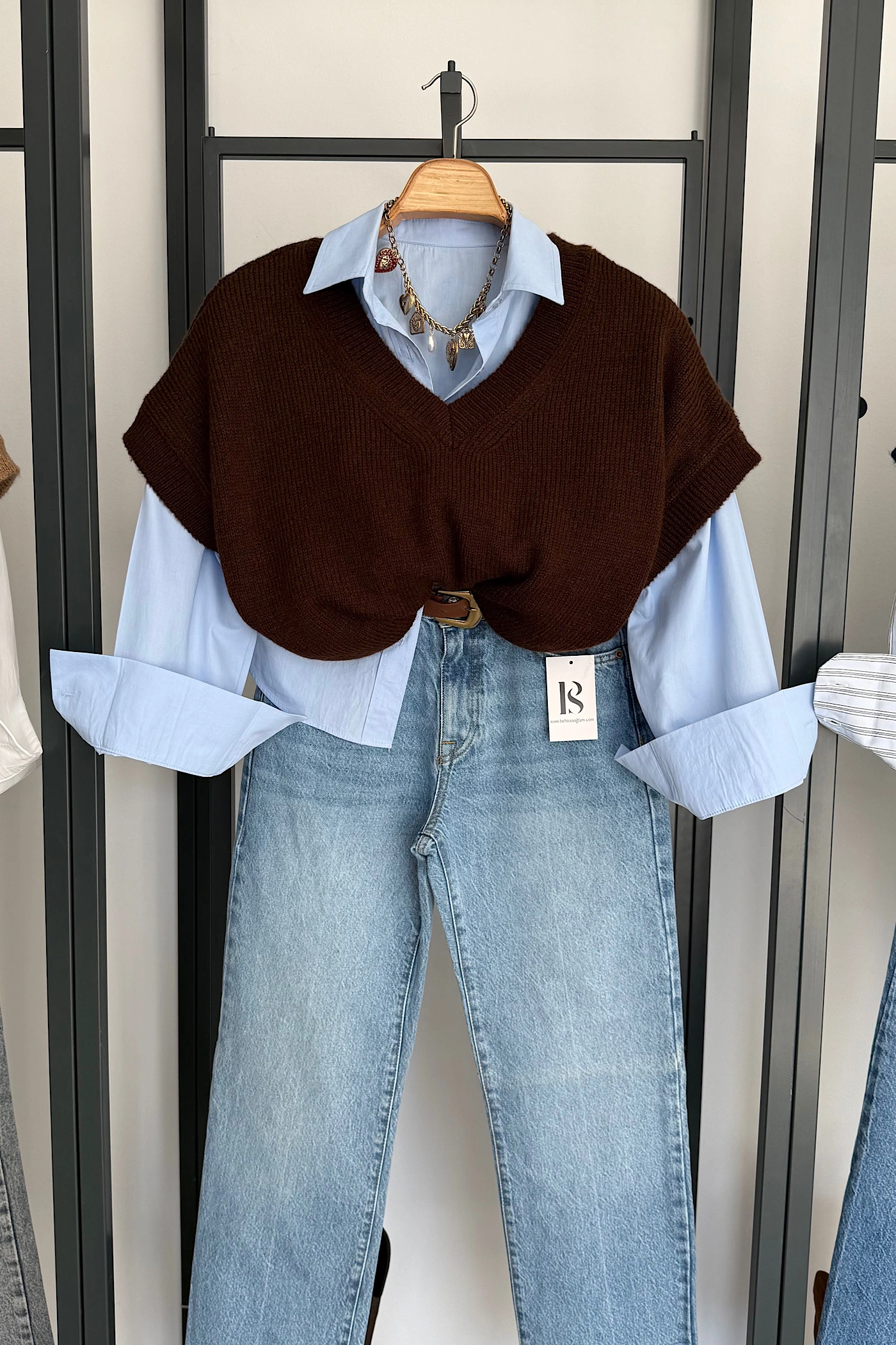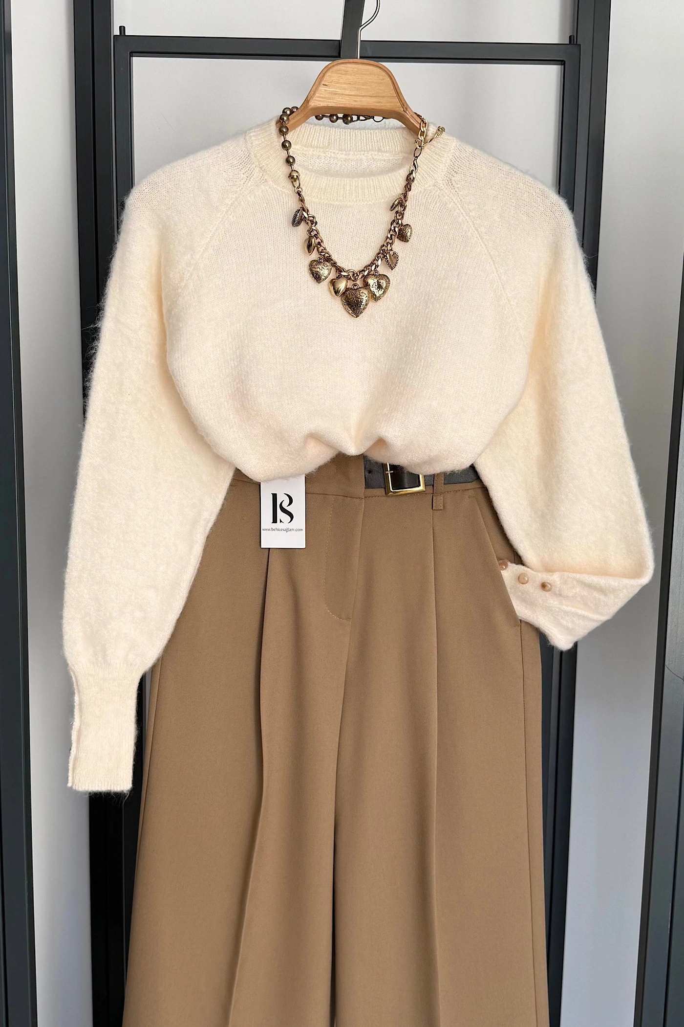 Patterned Brushed Buttoned Knit Cardigan Brown