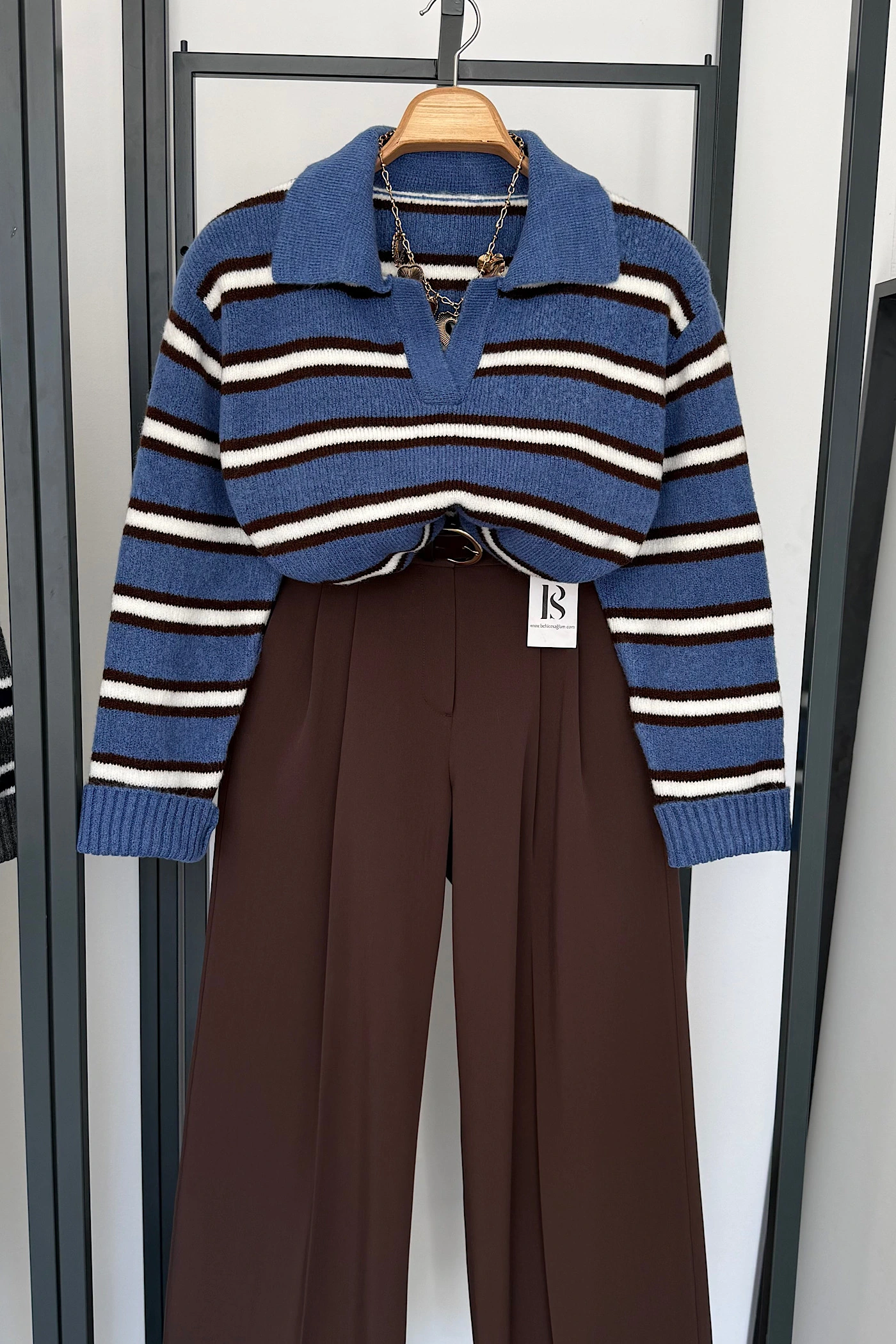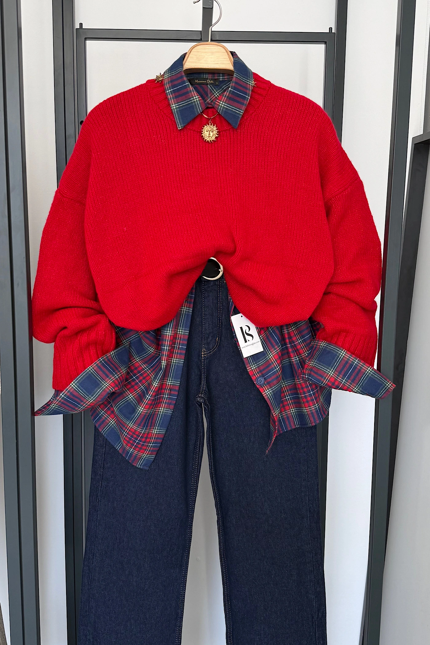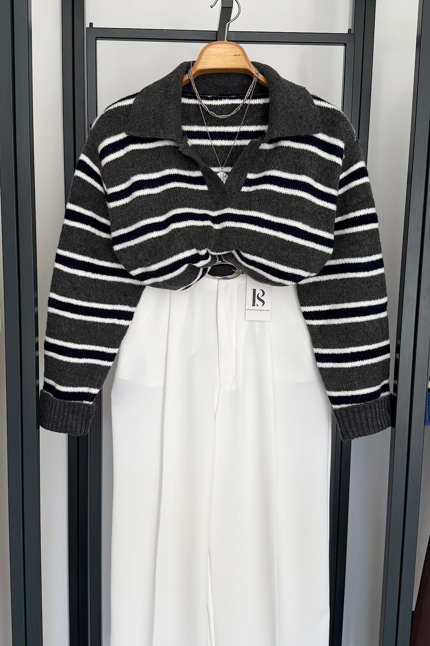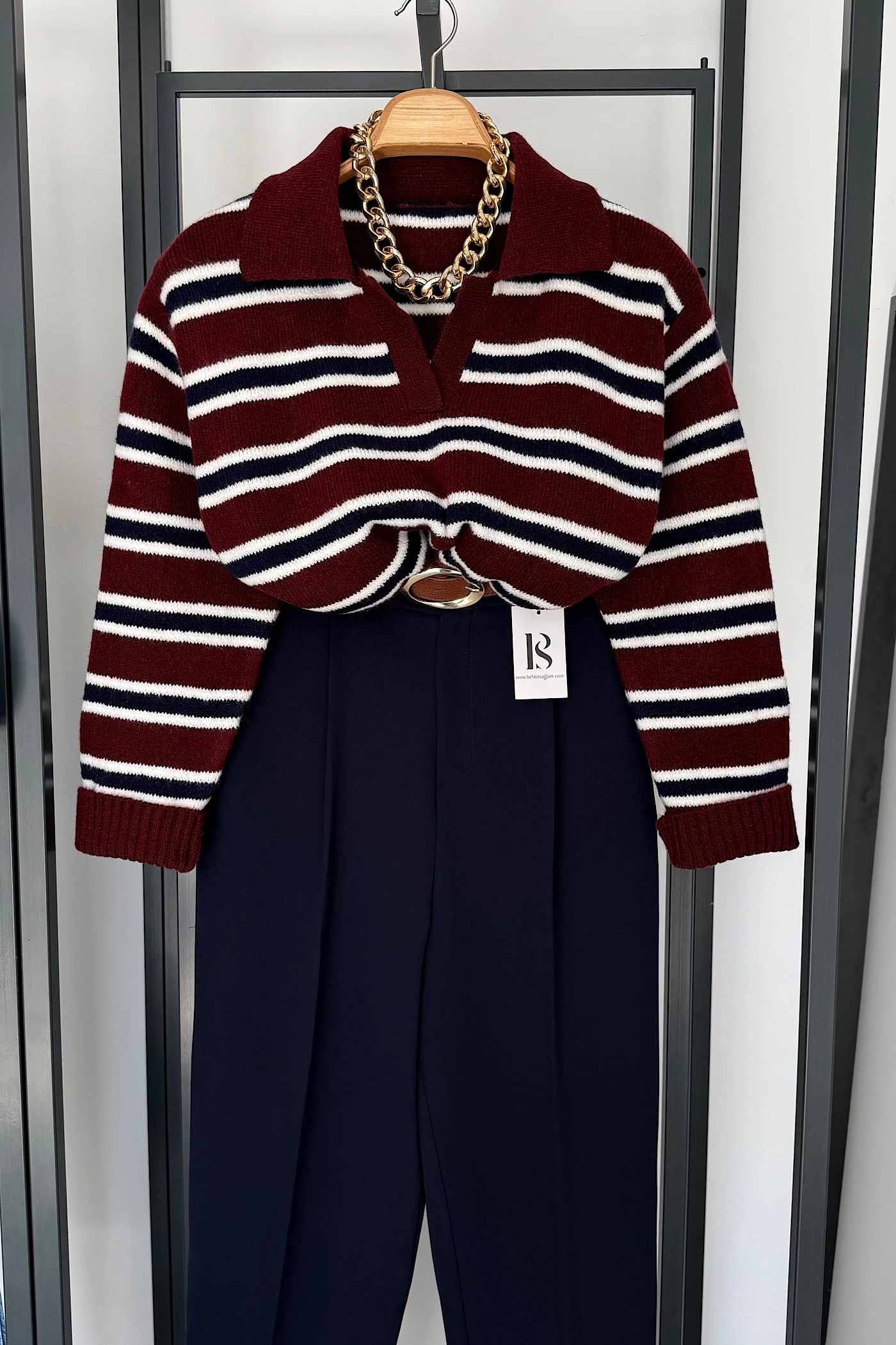 Buttoned Polo Collar Sweater Burgundy Anthracite