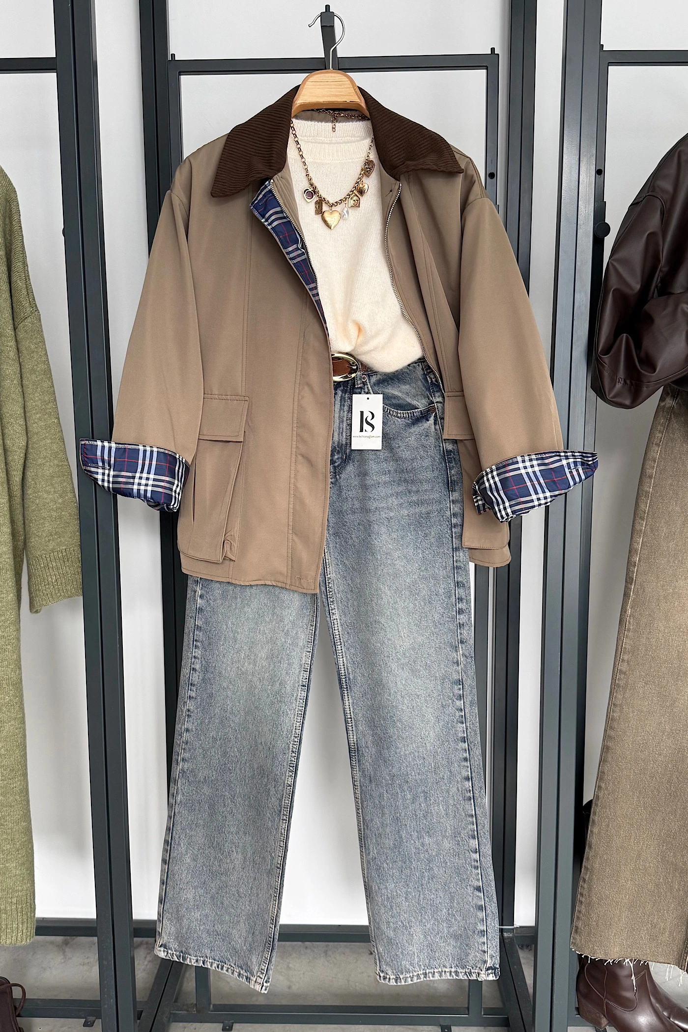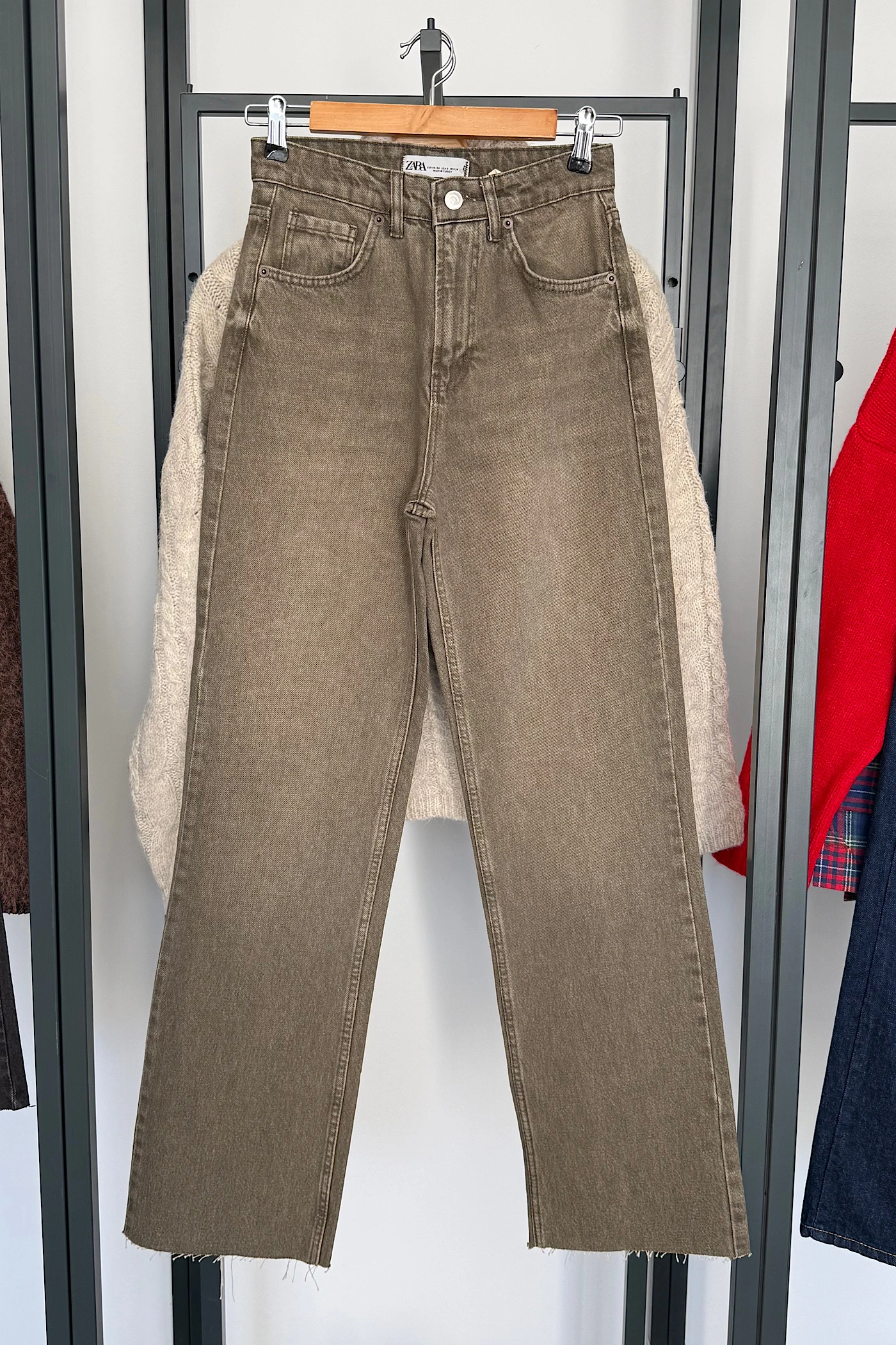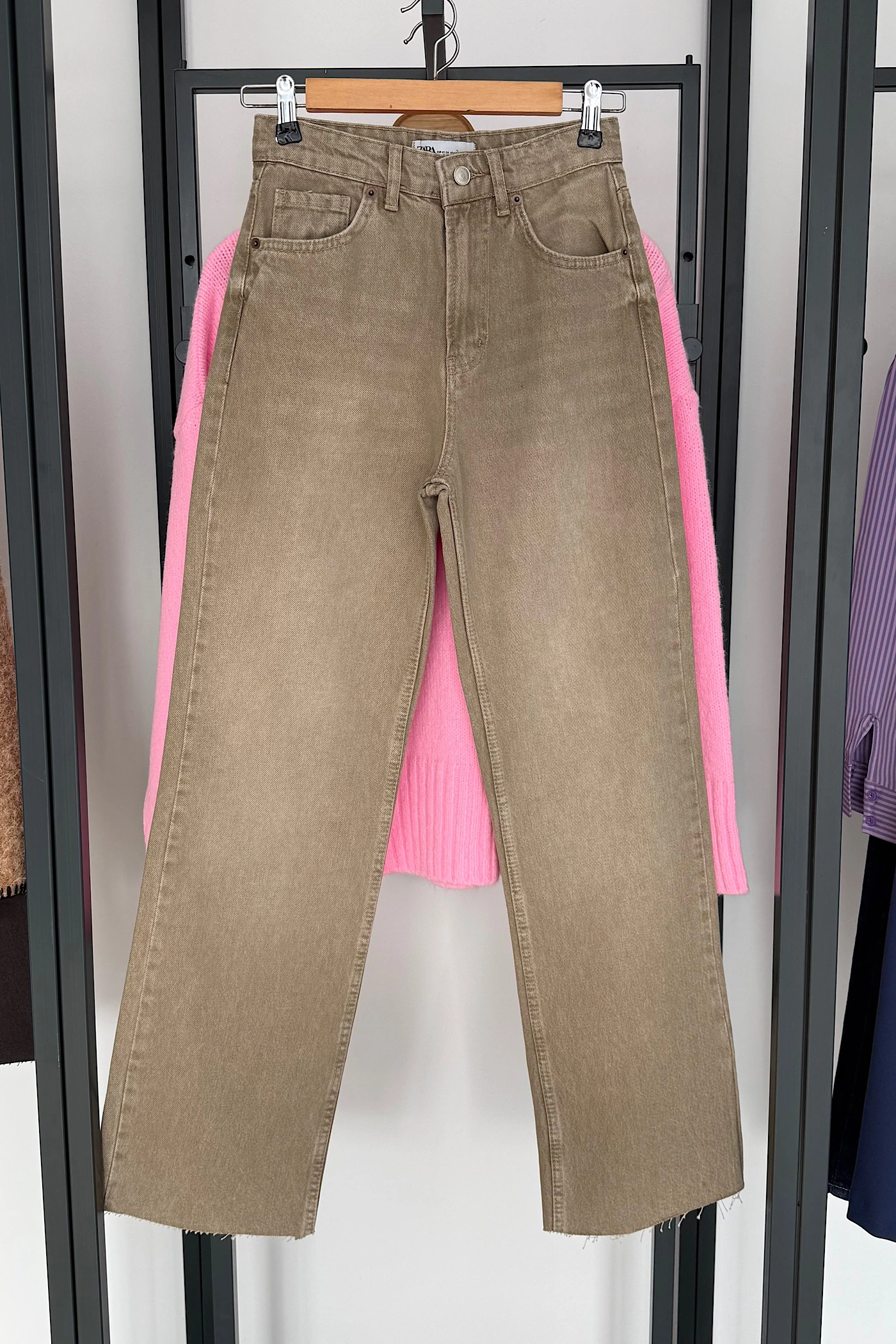 Straight Fit Vintage Look Raw Hem Jeans Khaki