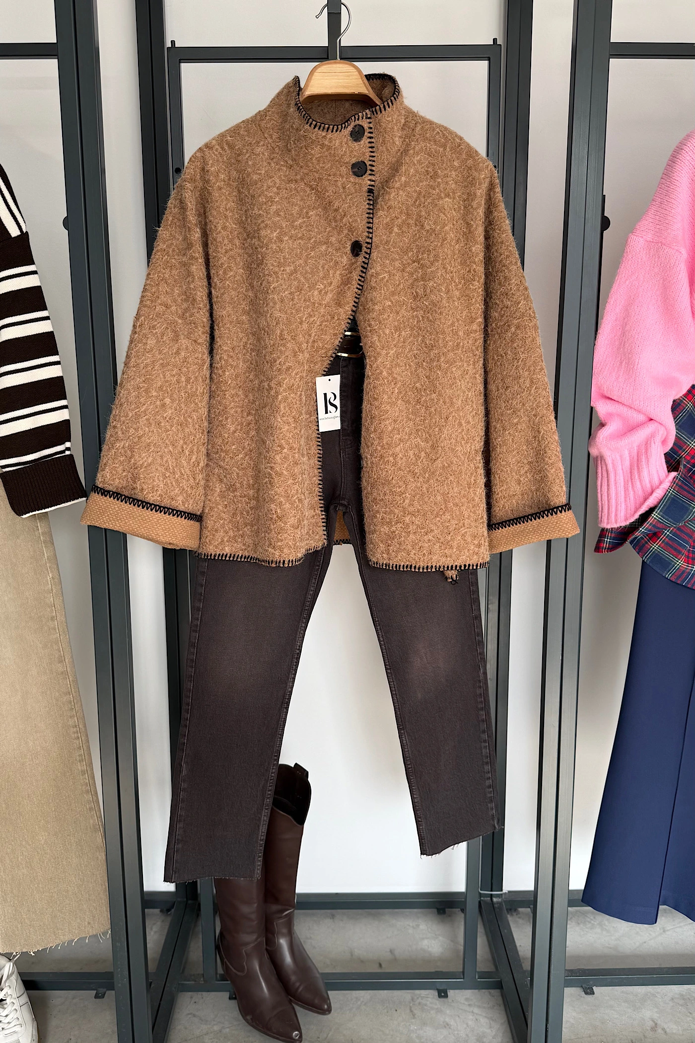 Stand Collar Wool-Blend Bomber Jacket Camel