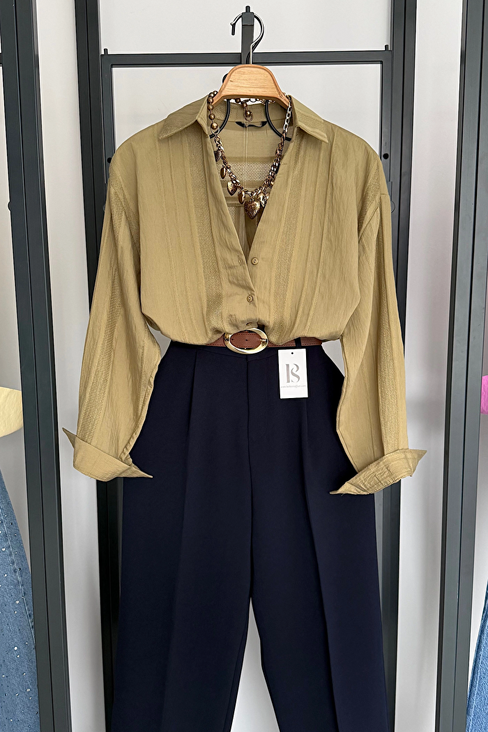 Striped Oversized Shirt – Khaki