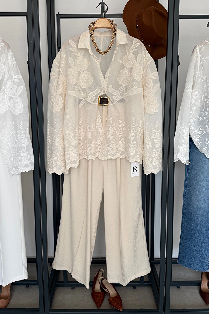 Lace Embroidered Shirt – Cream