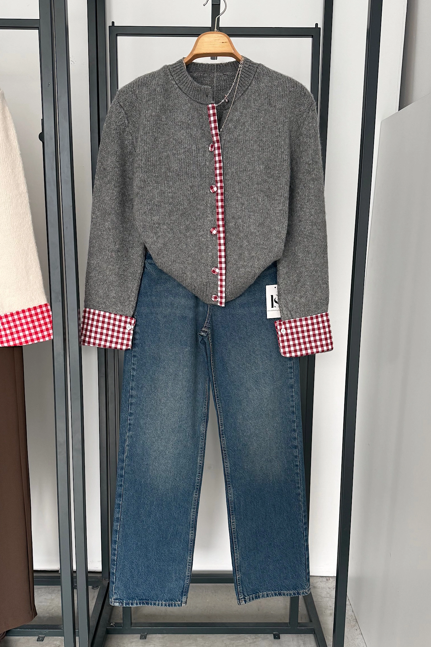 Geometric Patterned Brushed Cardigan Cream !