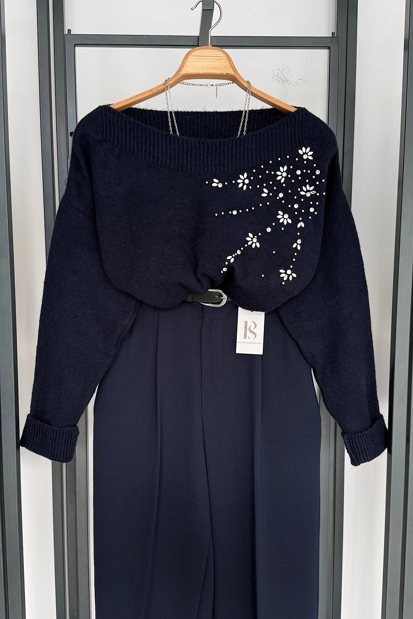 Grey Floral Stone-Detail Sweater