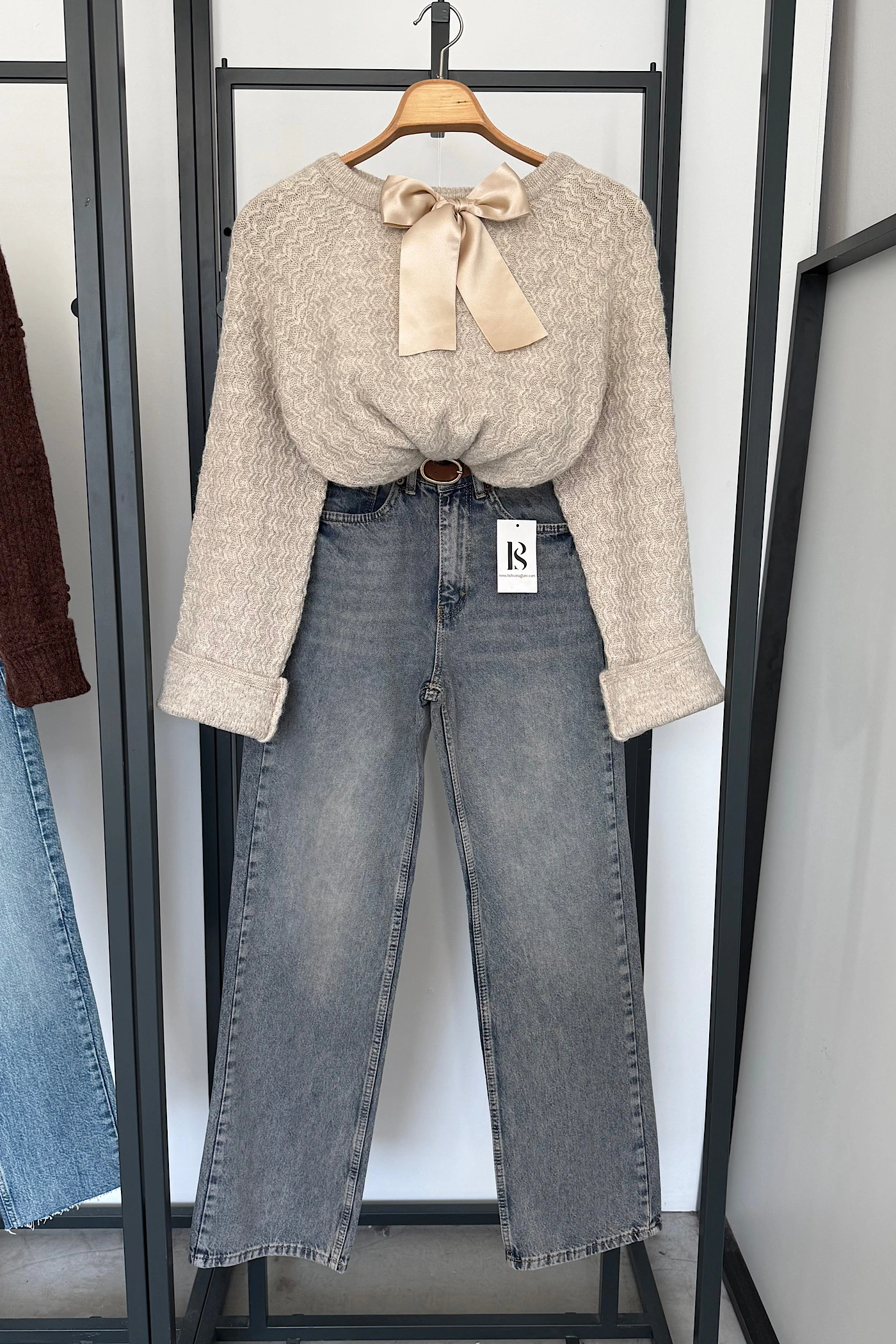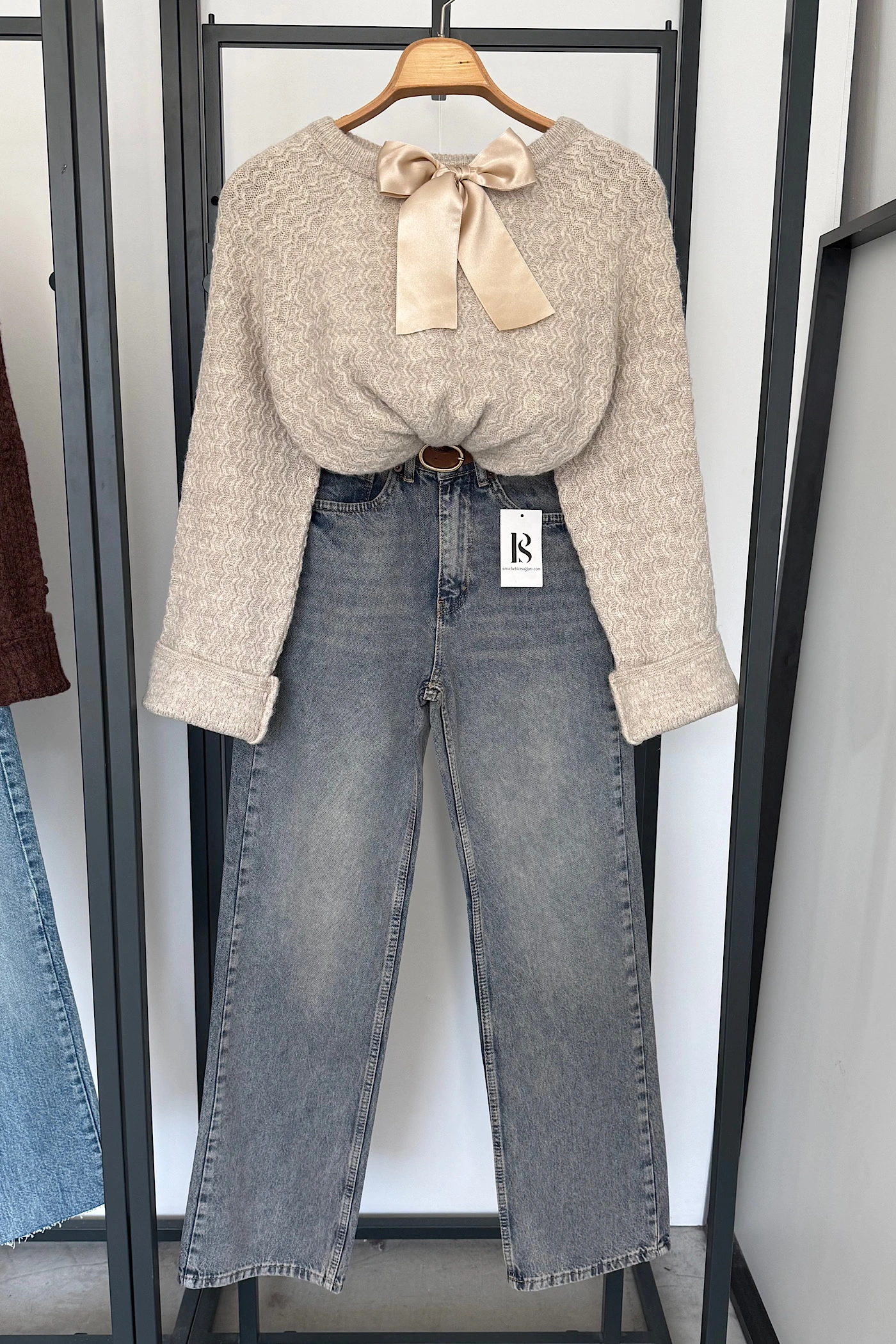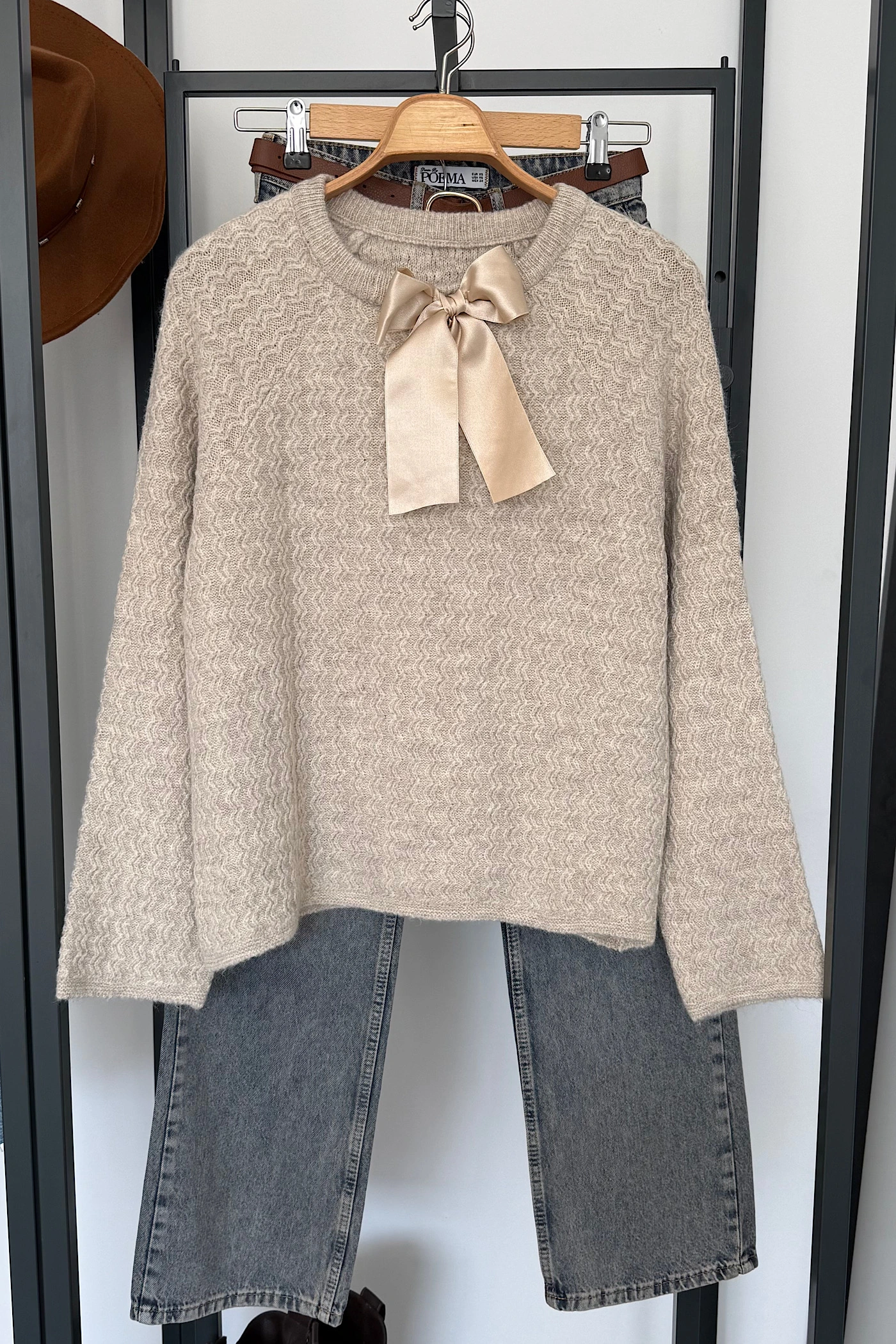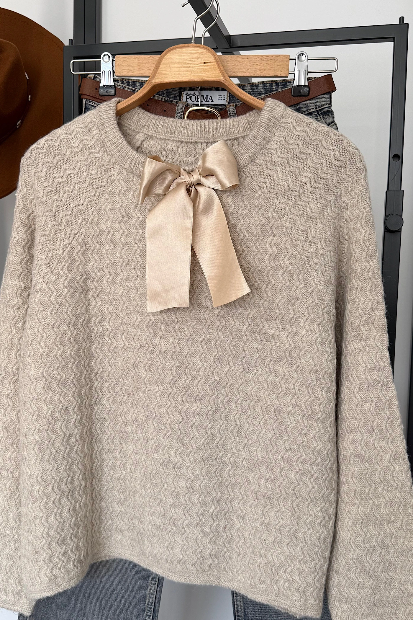 Beige Bow Sweater