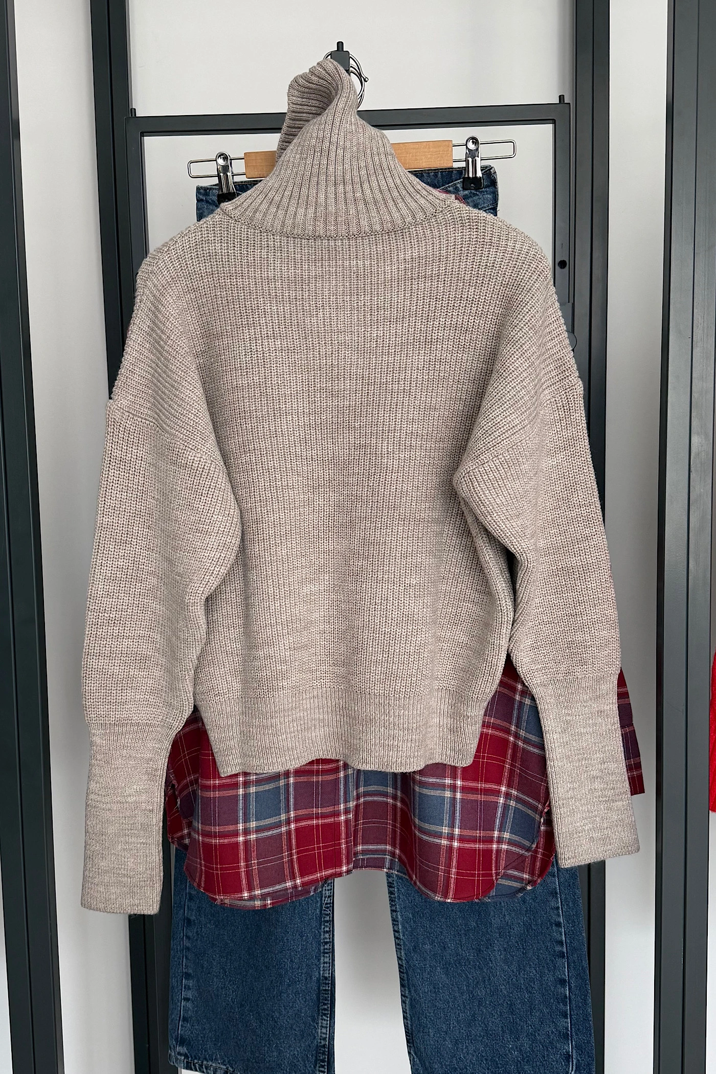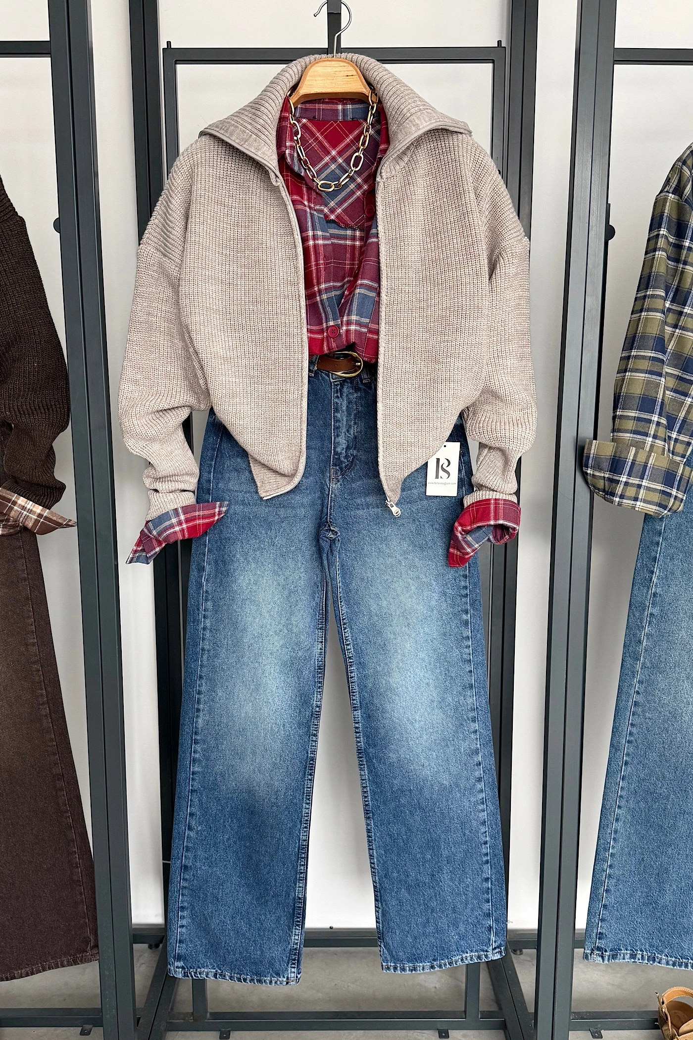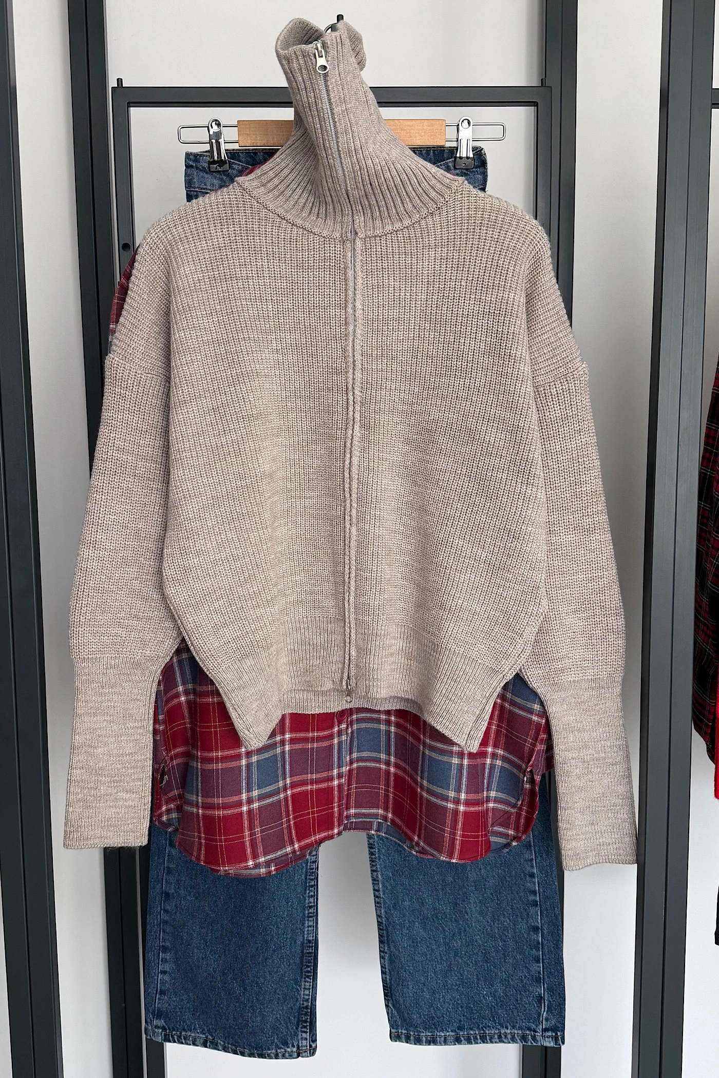 Double-Zip Cardigan Dark Beige
