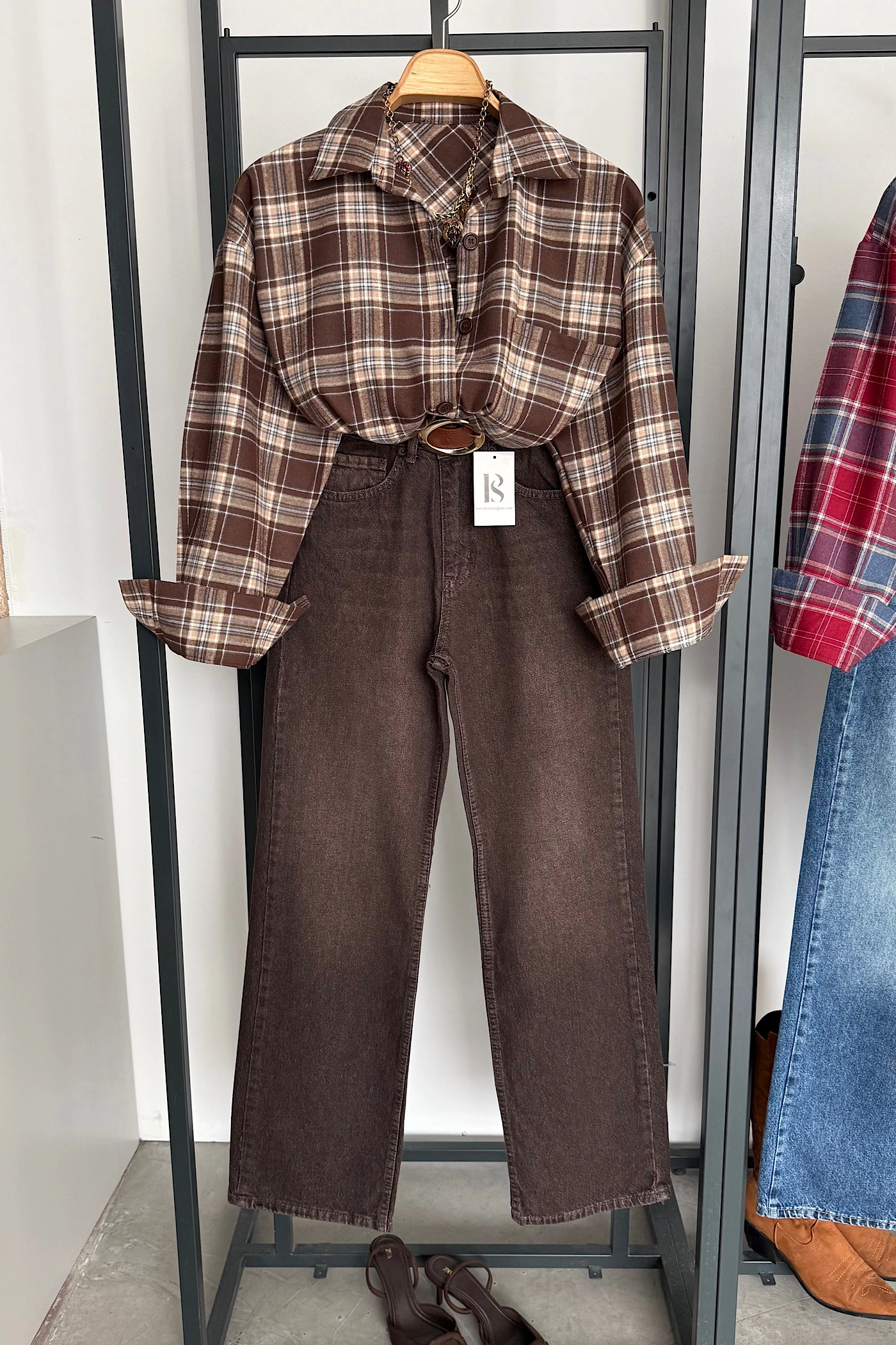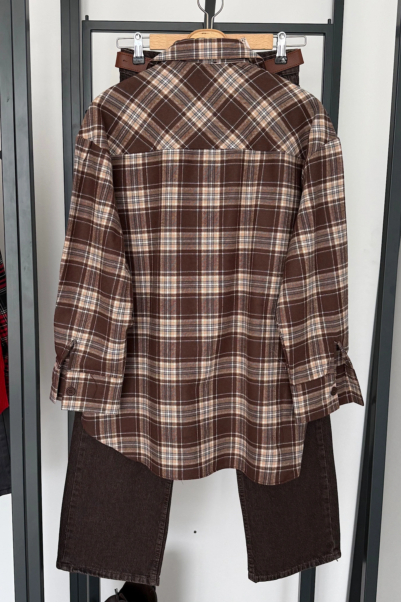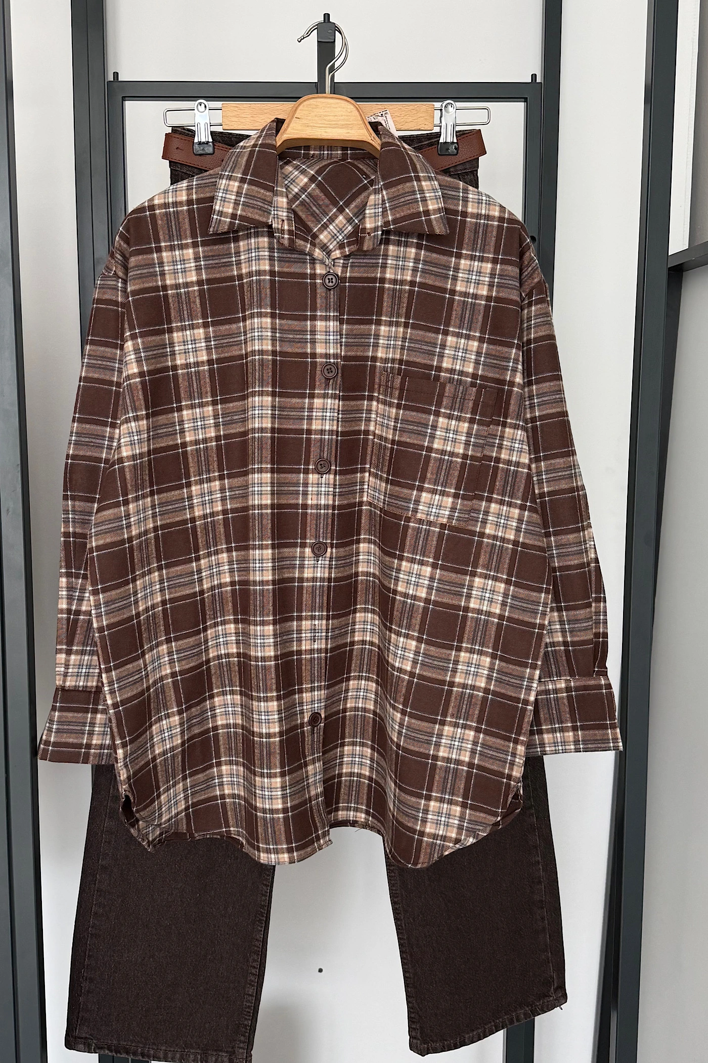 Oversized Checkered Shirt Brown