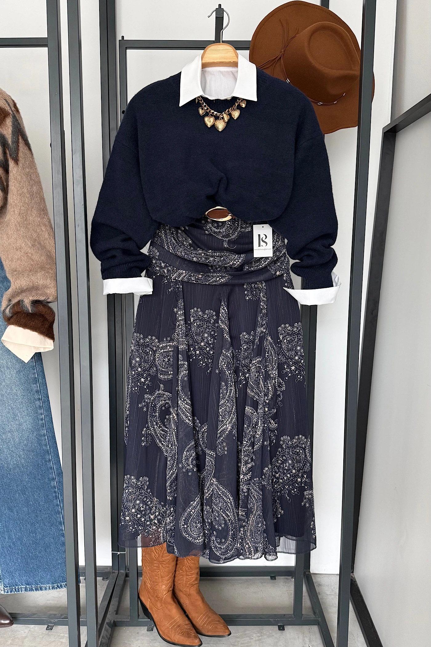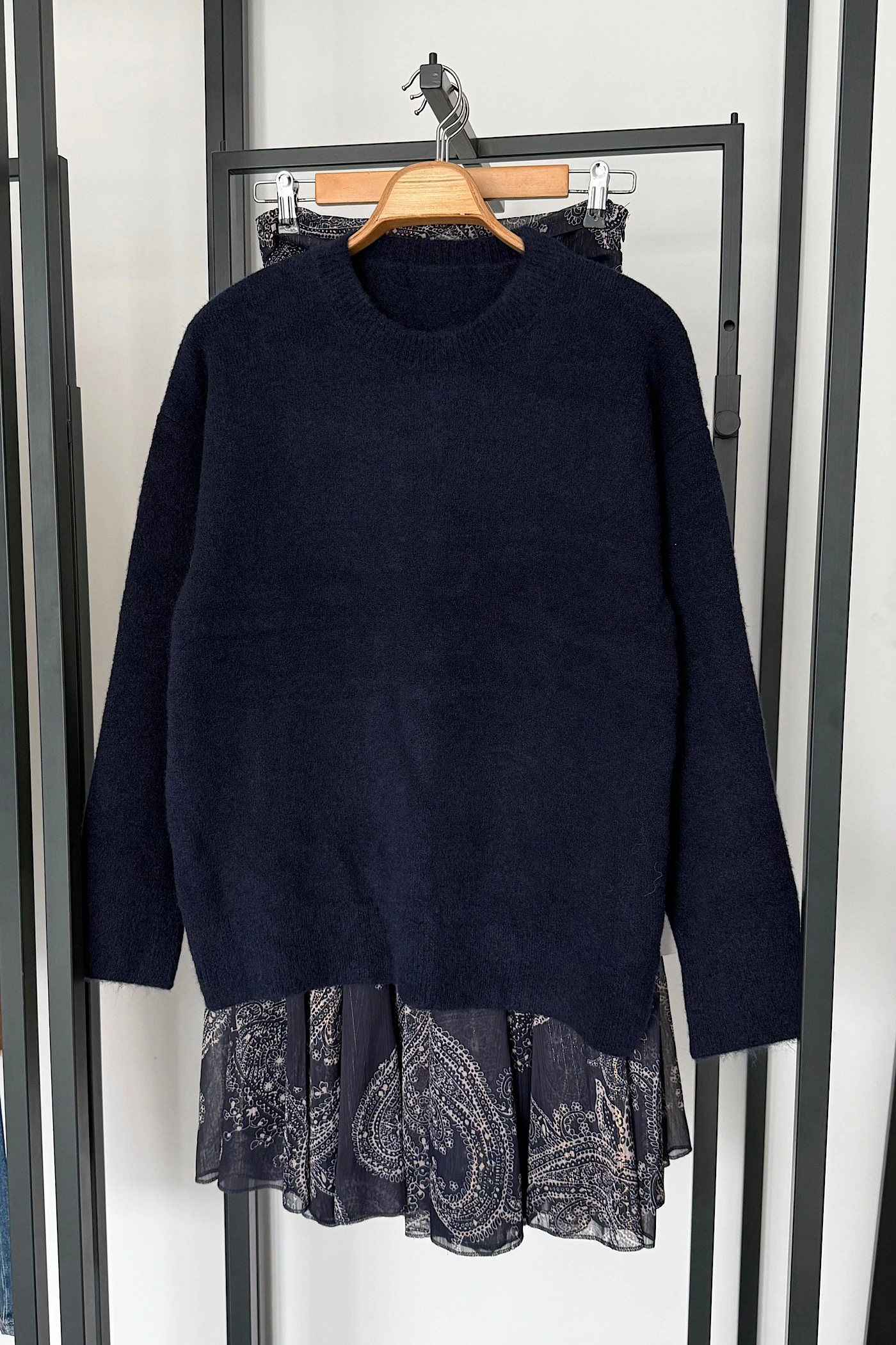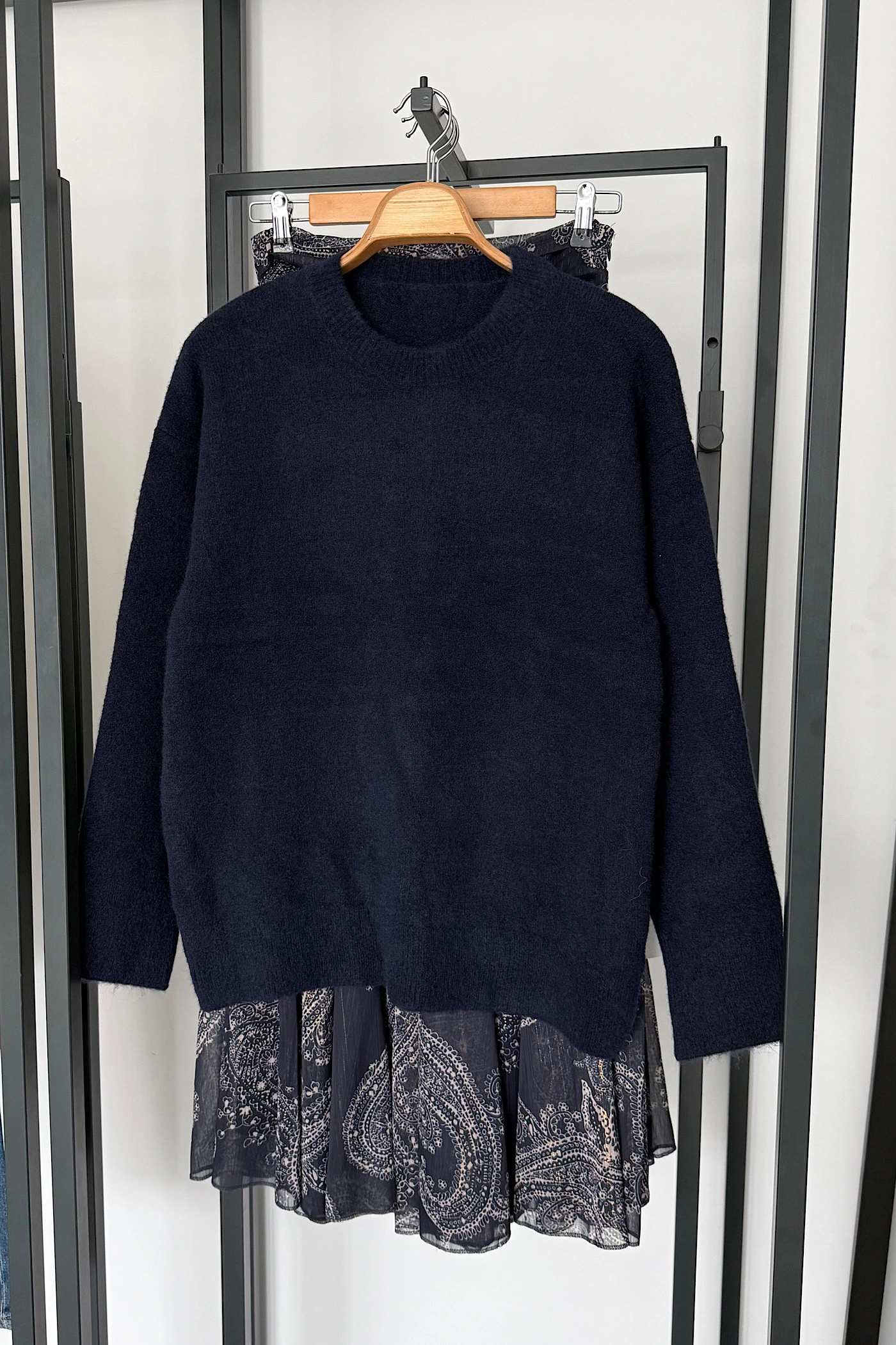 Soft-Touch Crew Neck Sweater – Navy Blue