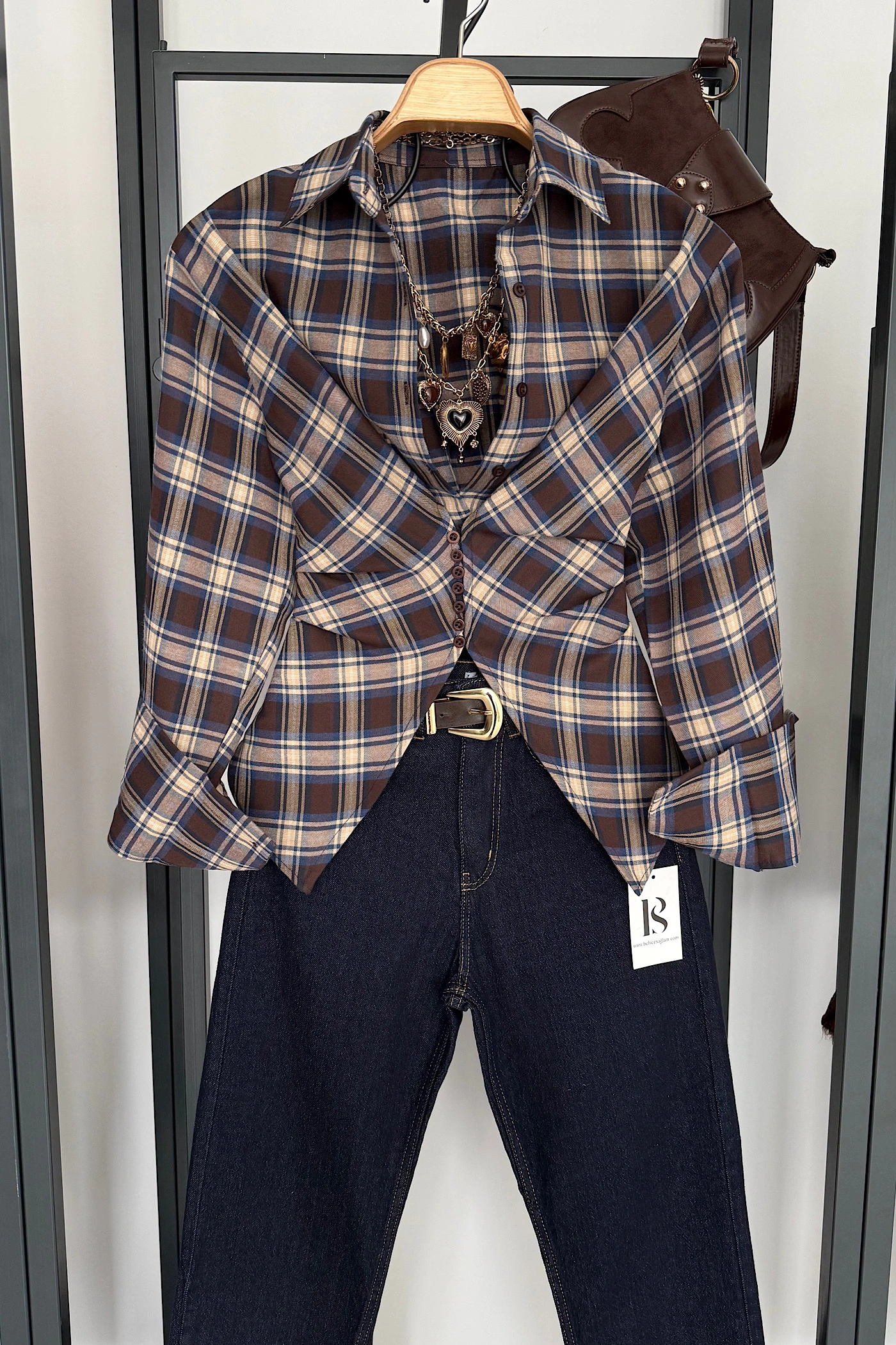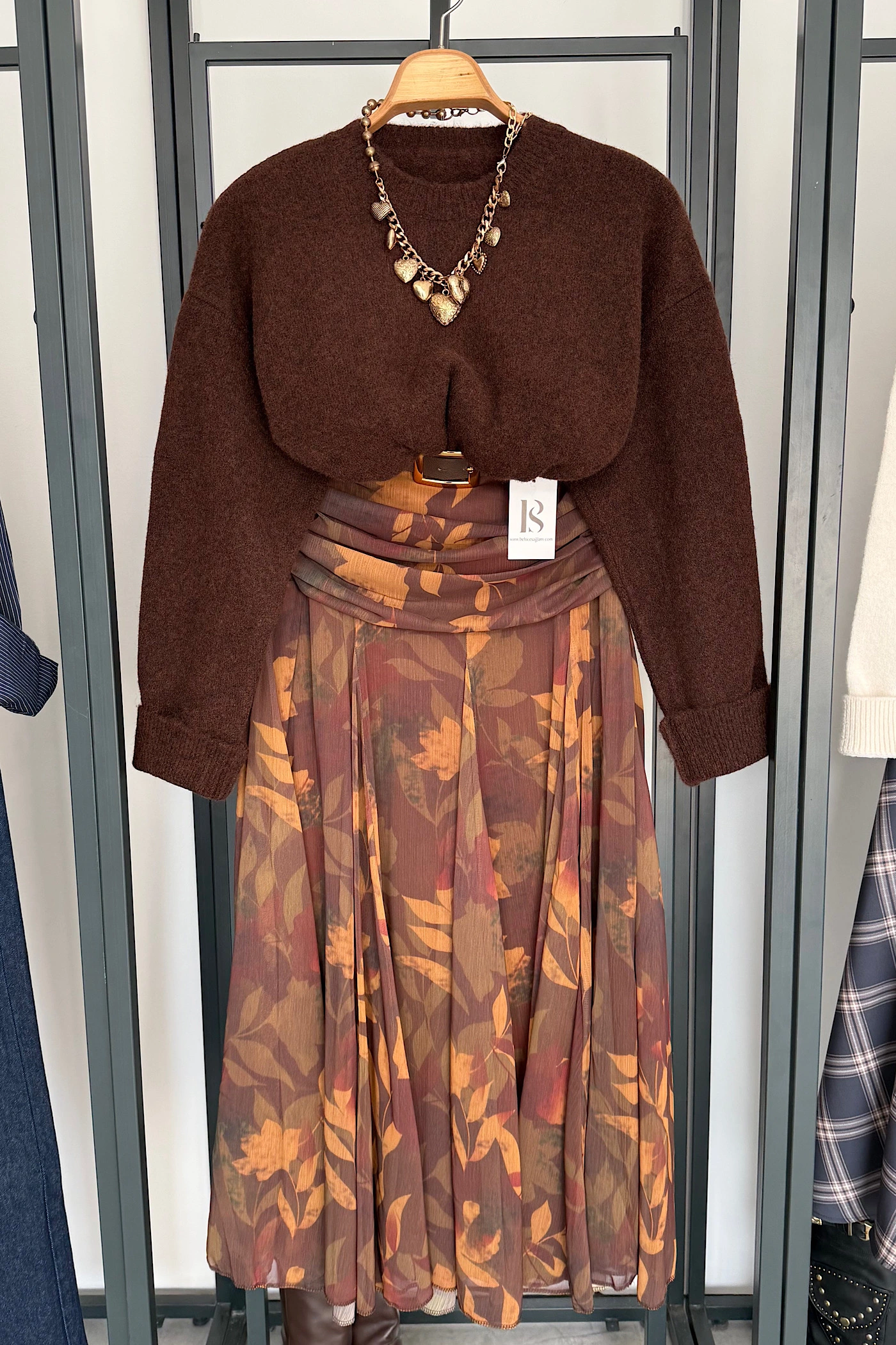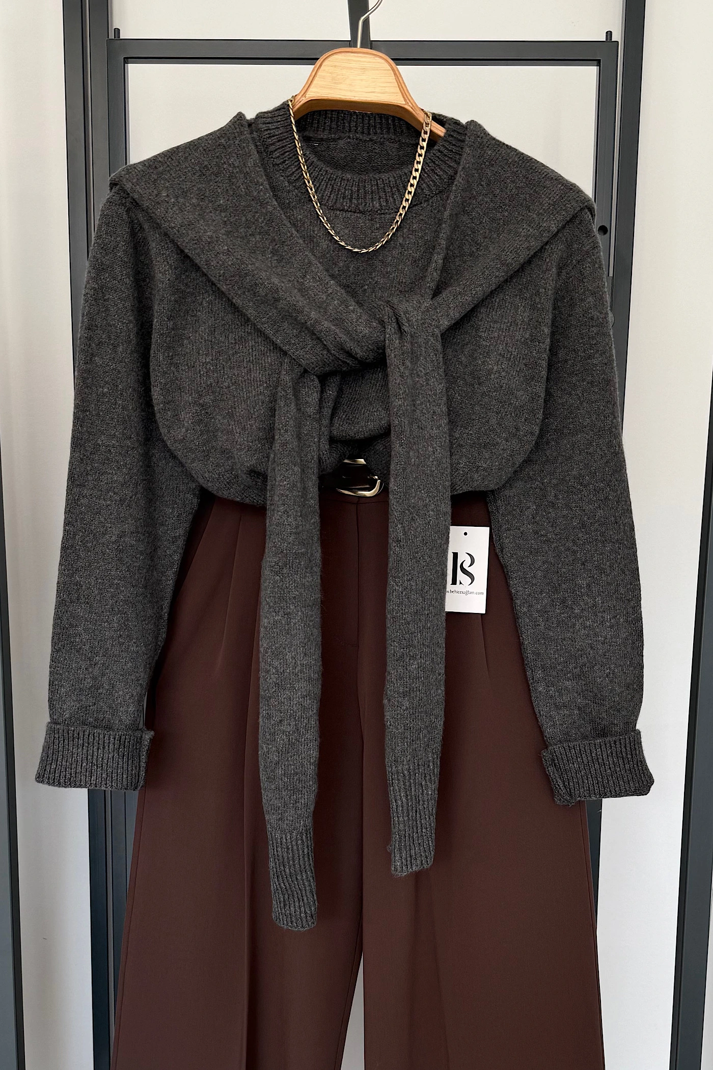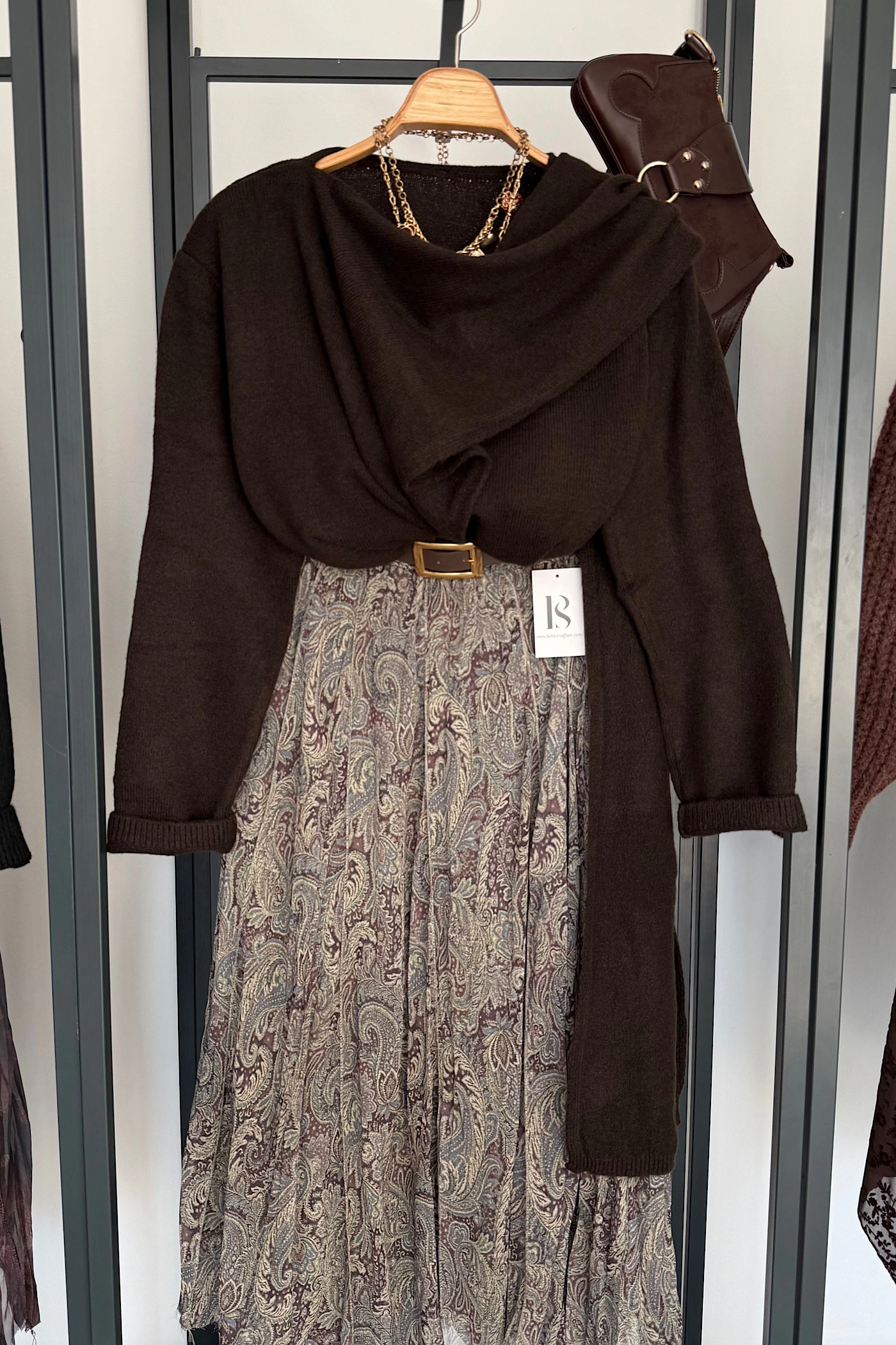 Boat Neck Tunic with Shawl Brown