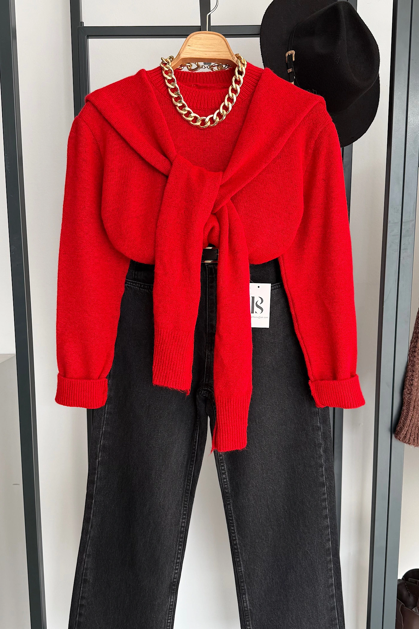 Red Tie-Detail Knit Sweater