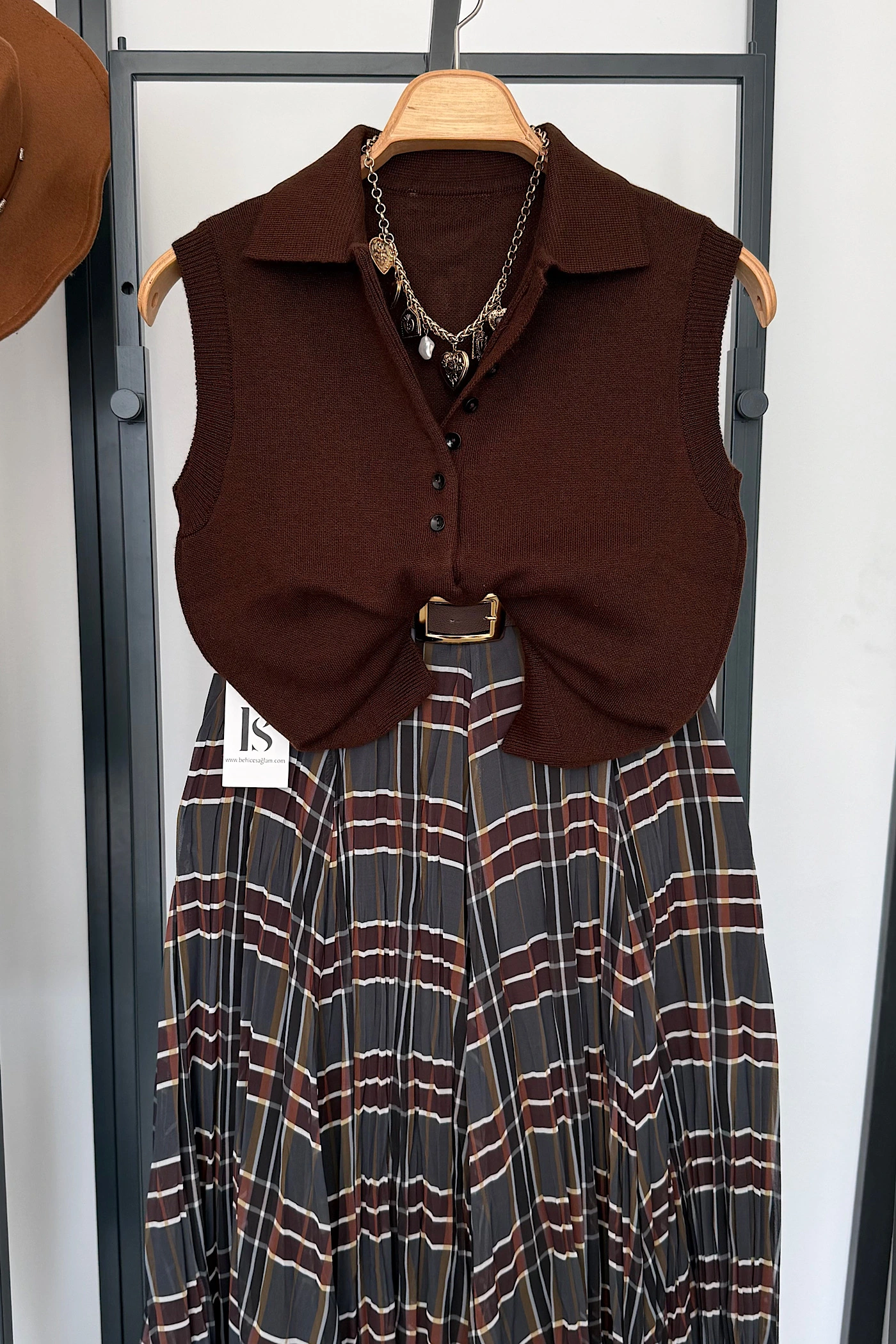 Dark Brown Sleeveless Buttoned Sweater